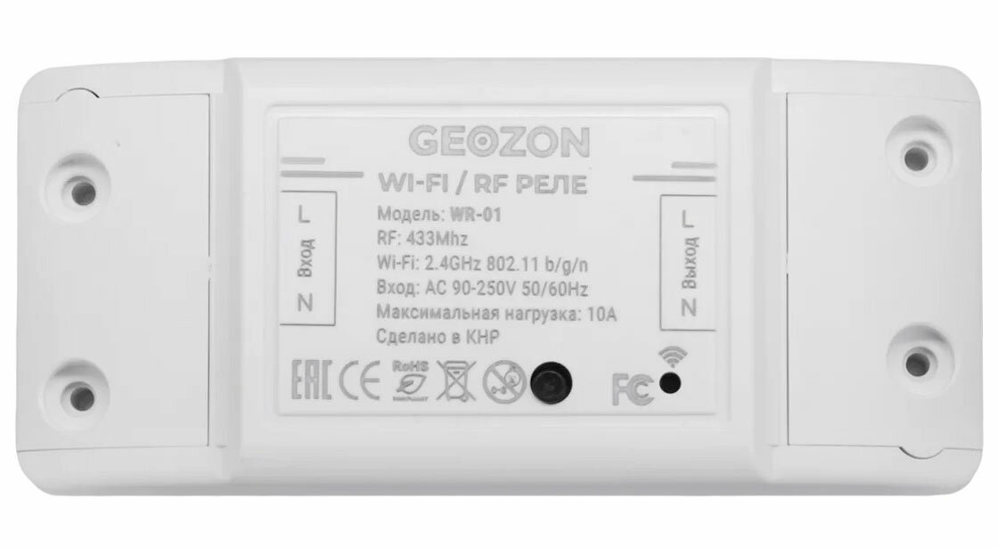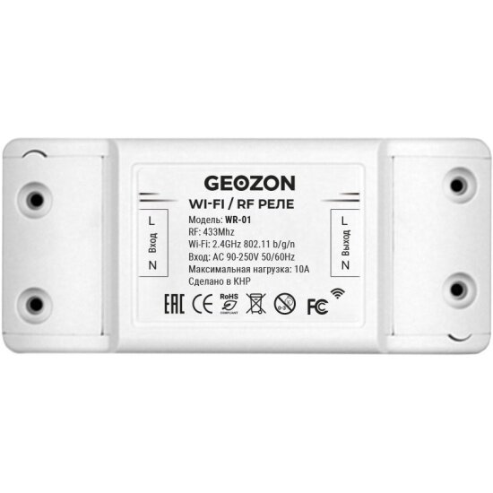 | Комплект поставки | Умный Wi-Fi модуль выключатель c управлением по RF-каналу GEOZON WR-01, Инструкция пользователя |