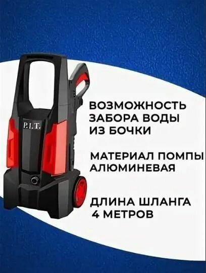 Мойка высокого давления P.I.T. отличается простотой использования и обслуживания. Используется для очистки мотоциклов и легковых автомобилей. На корпусе предусмотрен держатель для пистолета, что упрощает хранение модели. Колеса и ручка служат для легкости перемещения аппарата.Преимущества Пистолет имеет удобную эргономичную форму, что обеспечивает комфортную работу оператора Колеса для удобства перемещения с одного места на другое Транспортировочная ручка облегчает переноску P.I.T. Работает от сети 220 В Корпус выполнен из прочного пластика, что снижает вес изделия
