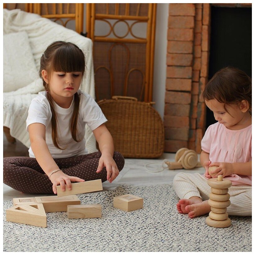 Ребёнок научится складывать кубики в нужно порядке, познакомится с размерами, направлениями и балансом, развивая при этом навыки мелкой моторики и фантазию. Подходит для детей от 3 лет.