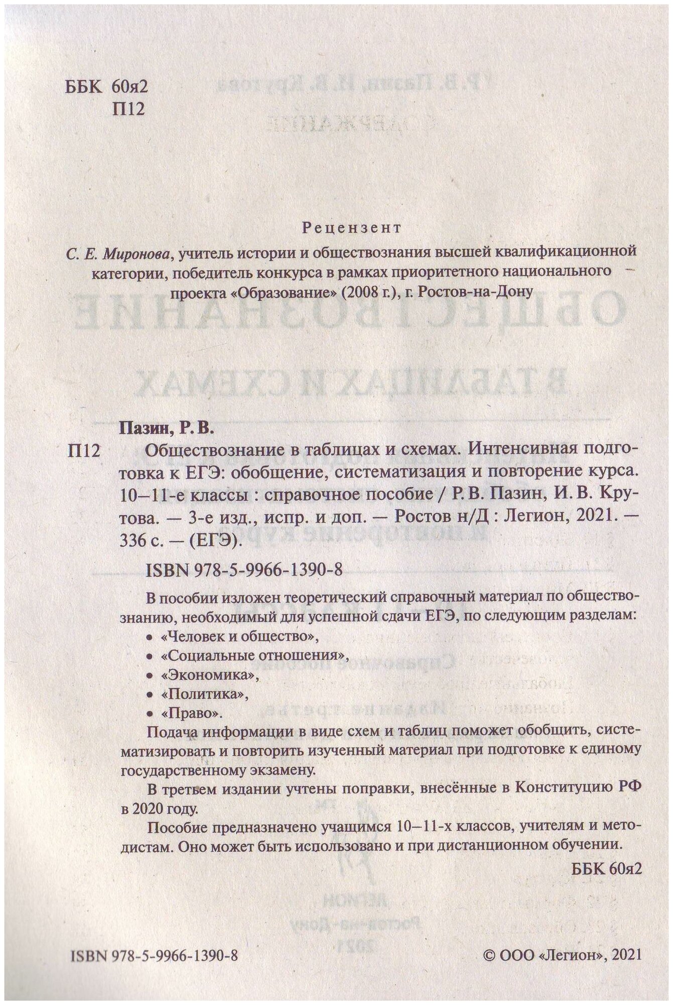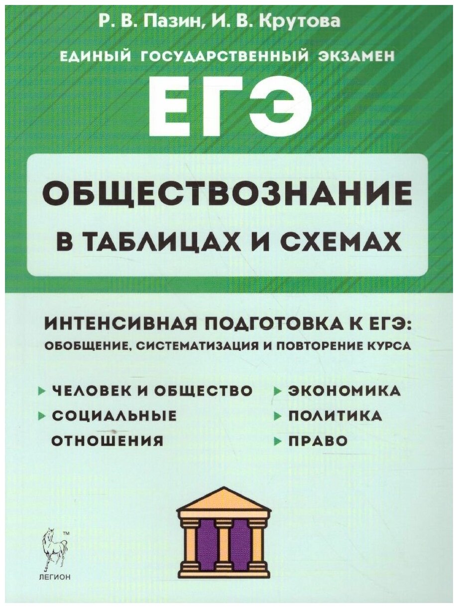 ЕГЭ. Обществознание в таблицах и схемах. Интенсивная подготовка (Пазин Роман Викторович, Крутова Ирина Владимировна); Легион, 2021