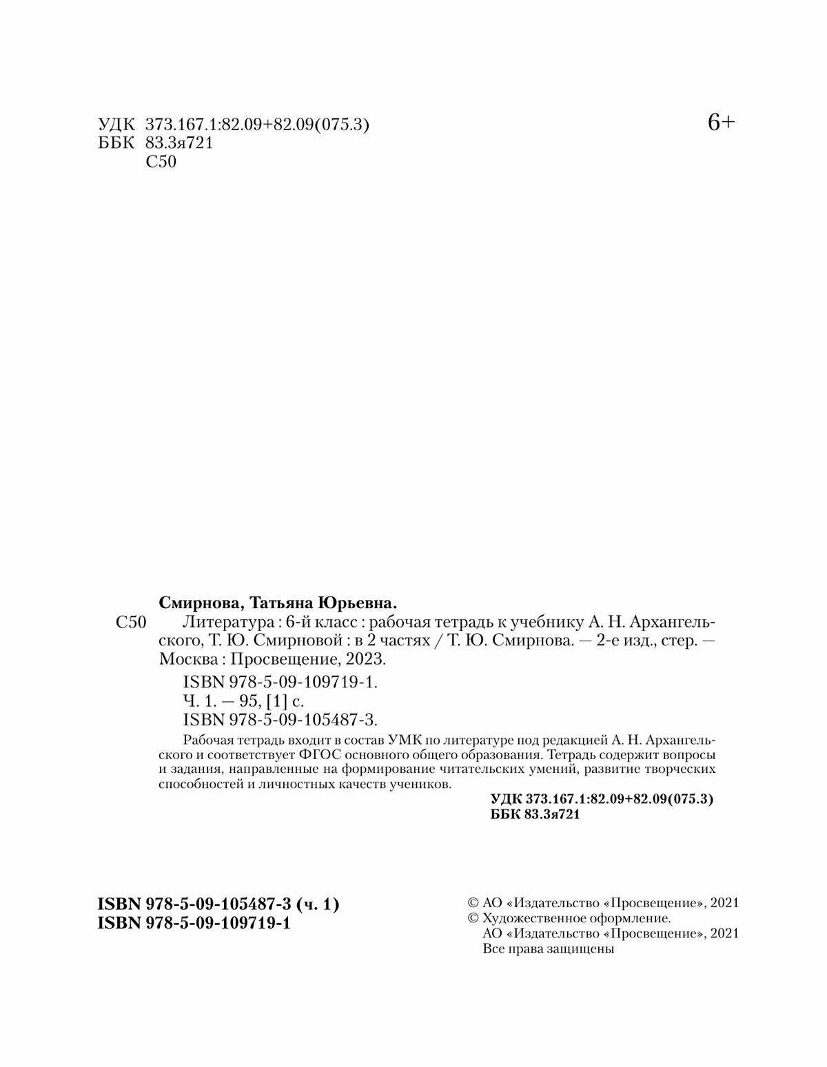 Литература. 6 класс. Рабочая тетрадь к учебнику А.Н. Архангельского. В 2-х частях. Часть 1 (Татьяна Юрьевна Смирнова); Просвещение, 2023