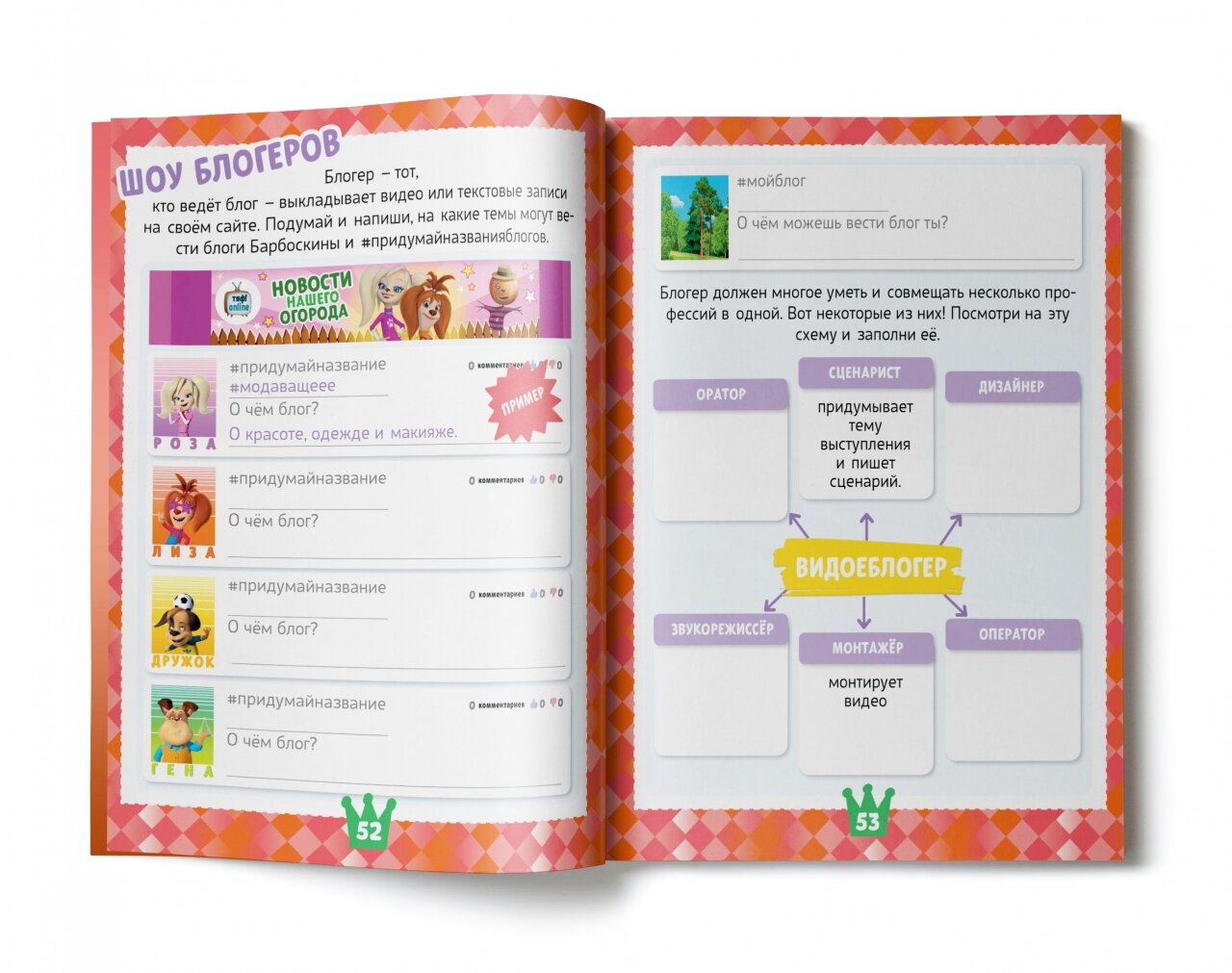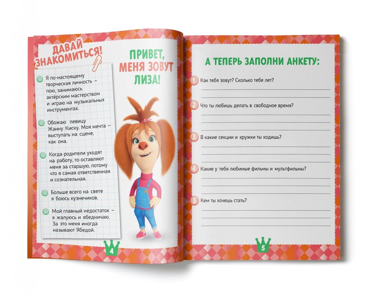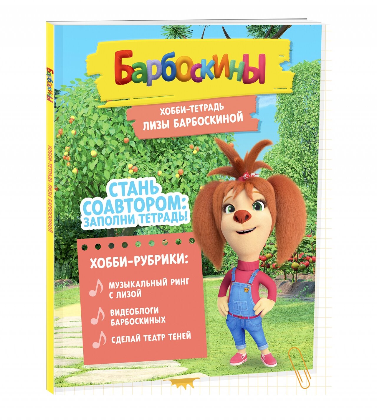 Лиза Барбоскина - творческая личность. Она поёт, занимается актёрским мастерством, играет на музыкальных инструментах и мечтает выступать на сцене. Может быть, и в тебе живёт неукротимая жажда творчества? Тогда эта тетрадь - то что надо! Она раскроет для тебя удивительные миры театра и музыки, кулинарии и журналистики. Вместе с Лизой ты попробуешь себя в разных сферах. Заполни тетрадь и узнаешь, как стать видеоблогером и как готовить полезные конфеты. Ты снимешь передачу о твоей семье, смастеришь собственный театр и научишься сервировать стол. А ещё тебя ждут увлекательные истории про Барбоскиных, игры, раскраски и тесты!