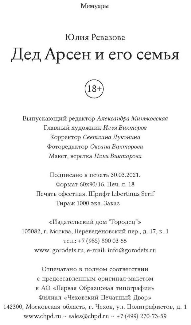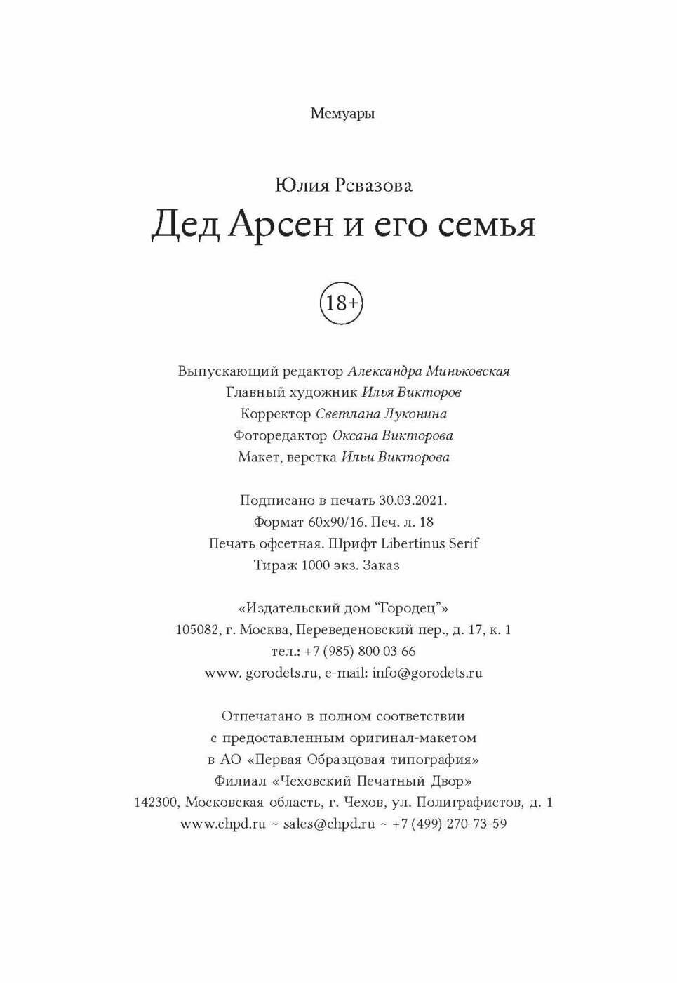 Книга: Дед Арсен и его семья (Юлия Ревазова); Издательский дом «Городец», 2021