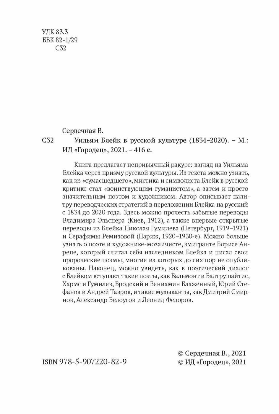 Уильям Блейк в русской культуре 1834 2020 (В. В. Сердечная); Издательский дом «Городец», 2021