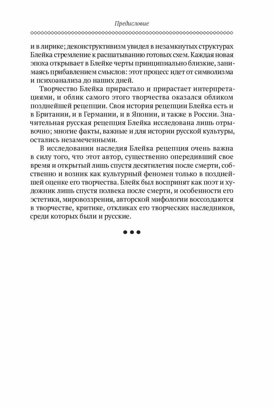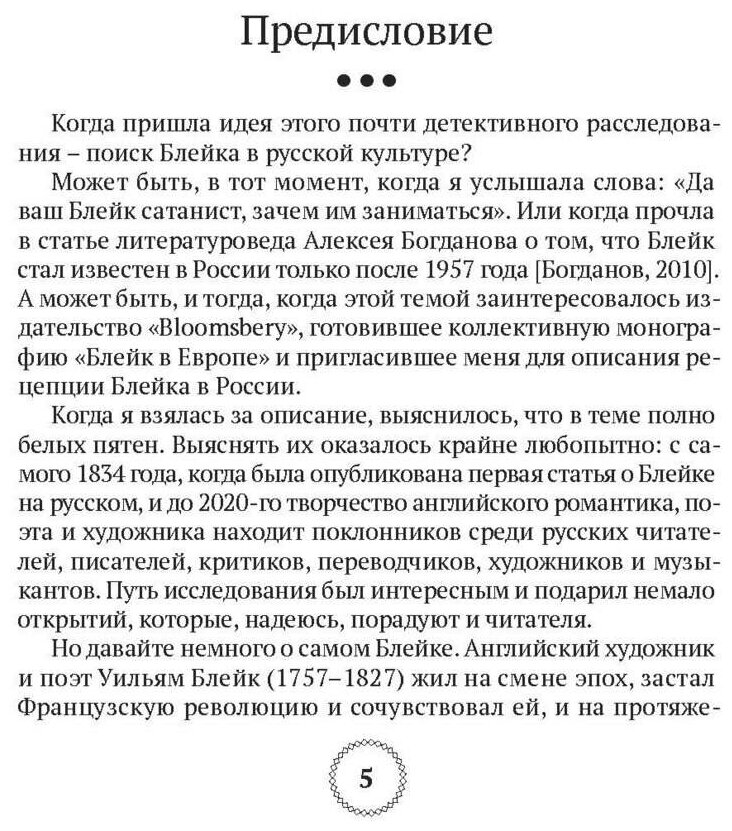 Книга предлагает непривычный ракурс: взгляд на Уильяма Блейка через призму русской культуры. Из текста можно узнать, как из «сумасшедшего», мистика и символиста Блейк в русской критике стал «воинствующим гуманистом», а затем и просто значительным поэтом и художником.