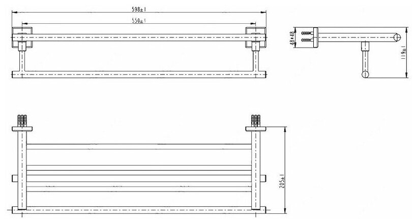 Полка комплектуется надежным креплением из нержавеющей стали, которое защитит интерьер ванной комнаты от появления ржавых подтеков на стенах в местах крепления.