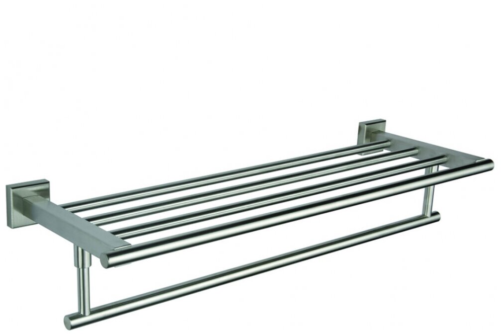 Полка для полотенец выполнена из нержавеющей стали, которая, в отличии от пластика, устойчива к коррозии, плесени и грибку.