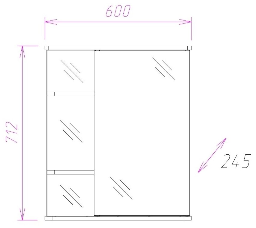 | ВКоробке | Зеркало - 1 шт. Комплект подсветки - 1 шт. Вкладная полка - 1 шт. Комплект доводчиков - 1 шт. Инструкция - 1 шт. |