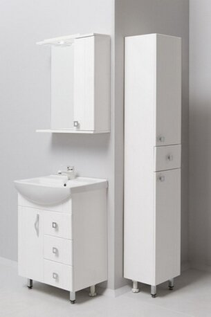 Корпус шкафа-зеркала выполнен из ЛДСП, фасад - из МДФ в пленке, устойчивых к механическим воздействиям, перепадам температур и высокой влажности.