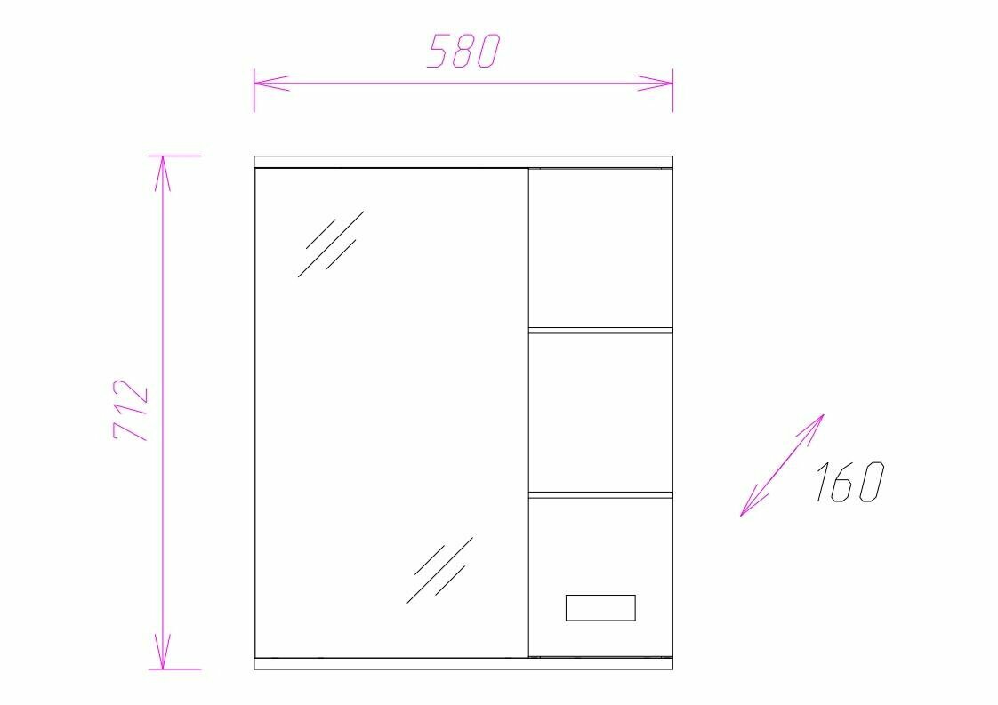Зеркальный шкаф Onika БАЛТИКА 58.01 левый 205815 Балтика 58.01 L 205815 с подсветкой Белое