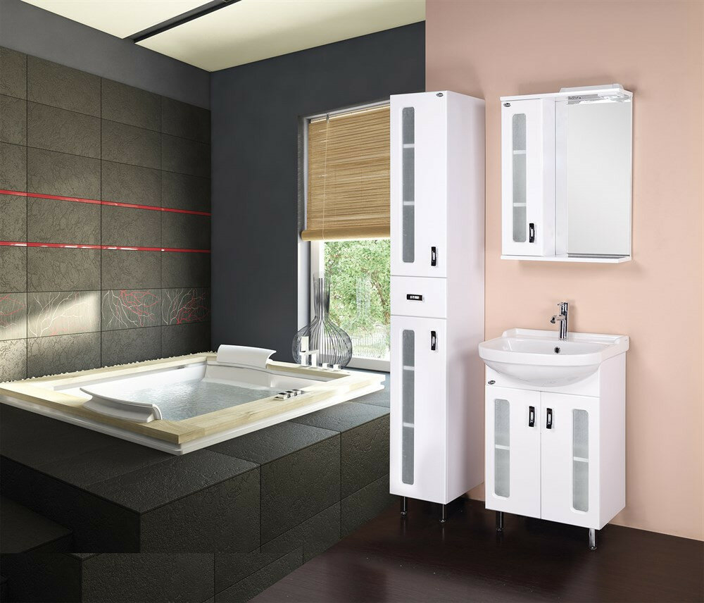 Корпус пенала выполнен из ЛДСП, фасад - из МДФ в пленке, специально предназначенных для использования в условиях высокой влажности.