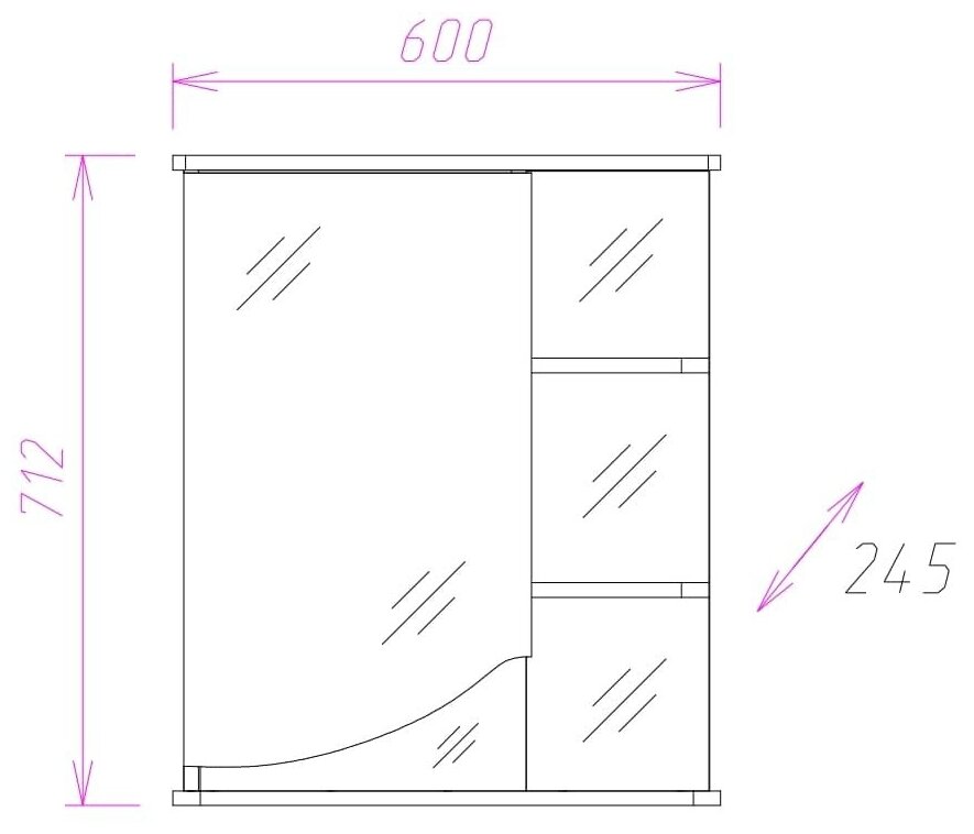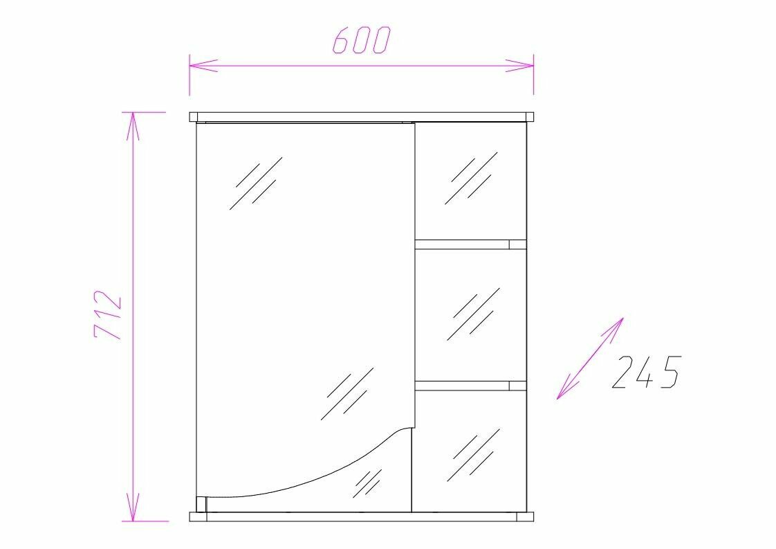 Зеркальный шкаф Onika ВИОЛА 60.01 левый 206003