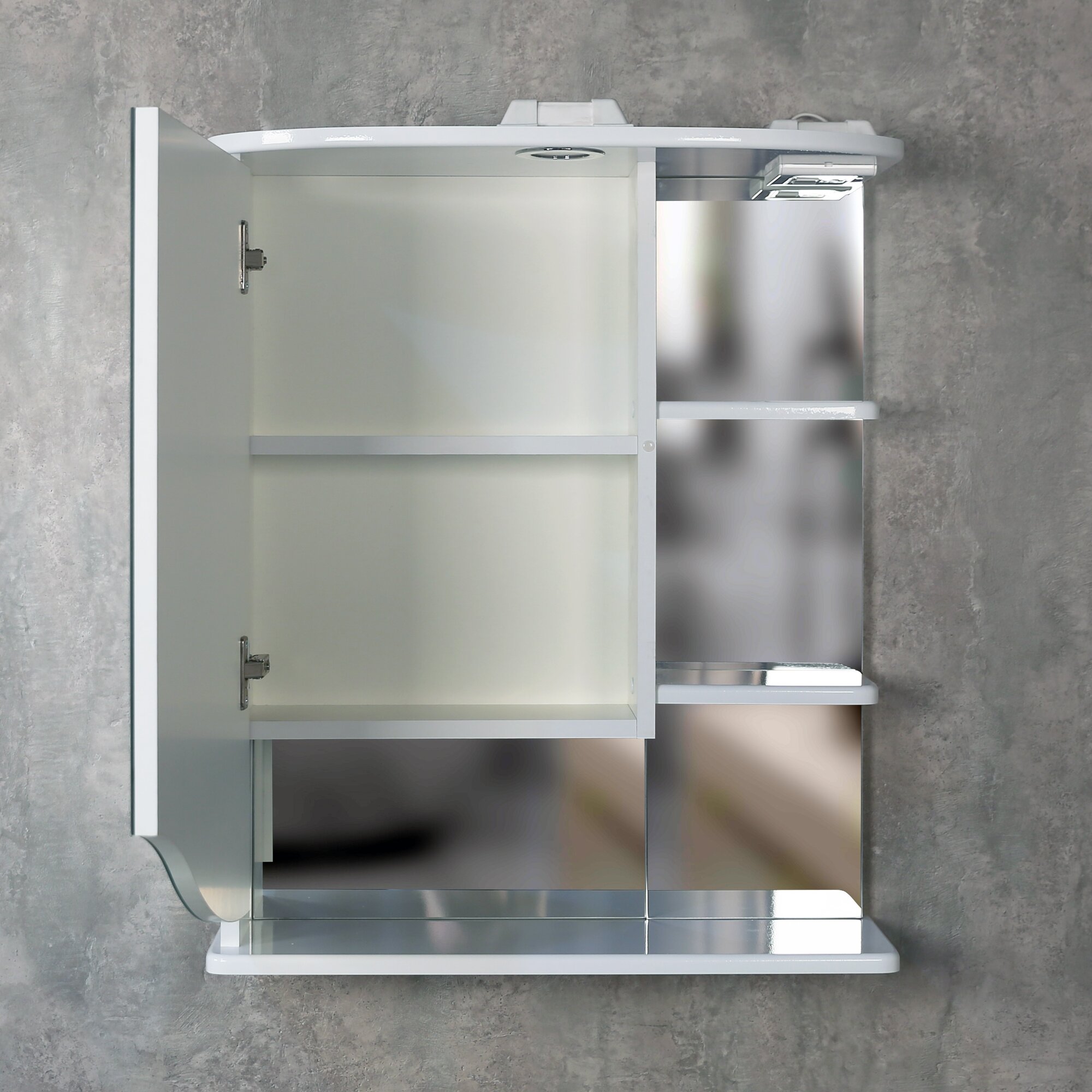 | Оснащение | зеркало с подсветкой, зеркало с полочкой, зеркало с розеткой, крепления, зеркало |