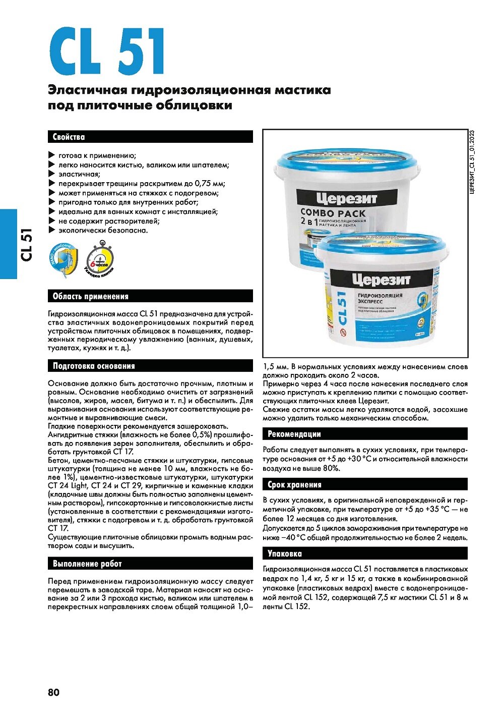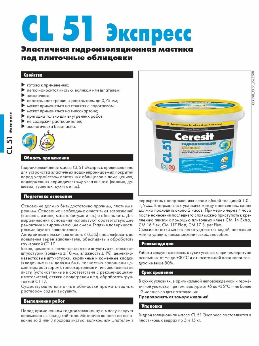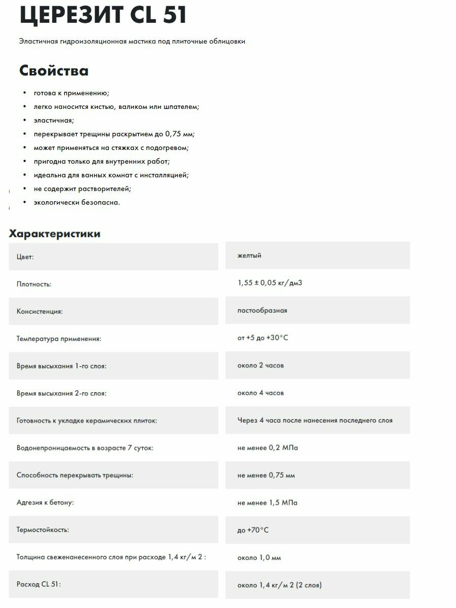 Гидроизоляционная масса CL 51 предназначена для устройства эластичных водонепроницаемых покрытий перед устройством плиточных облицовок в помещениях, подверженных периодическому увлажнению (ванных, душевых, туалетах, кухнях и т.д.).