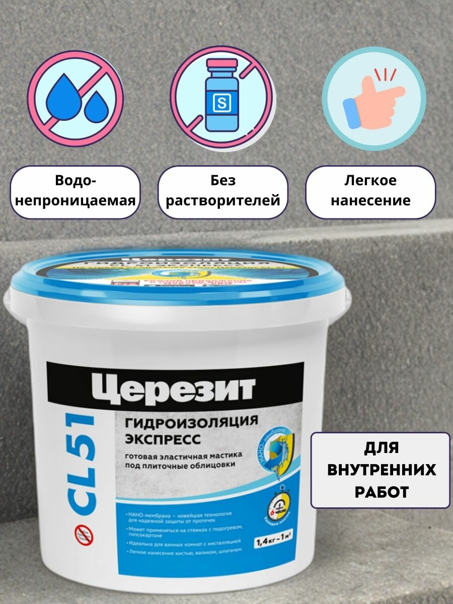 На сегодняшний день товар «Гидроизоляция полимерная Ceresit CL 51 экспресс 1,4 кг» можно купить с кешбеком в 1 магазине: Яндекс.Маркет