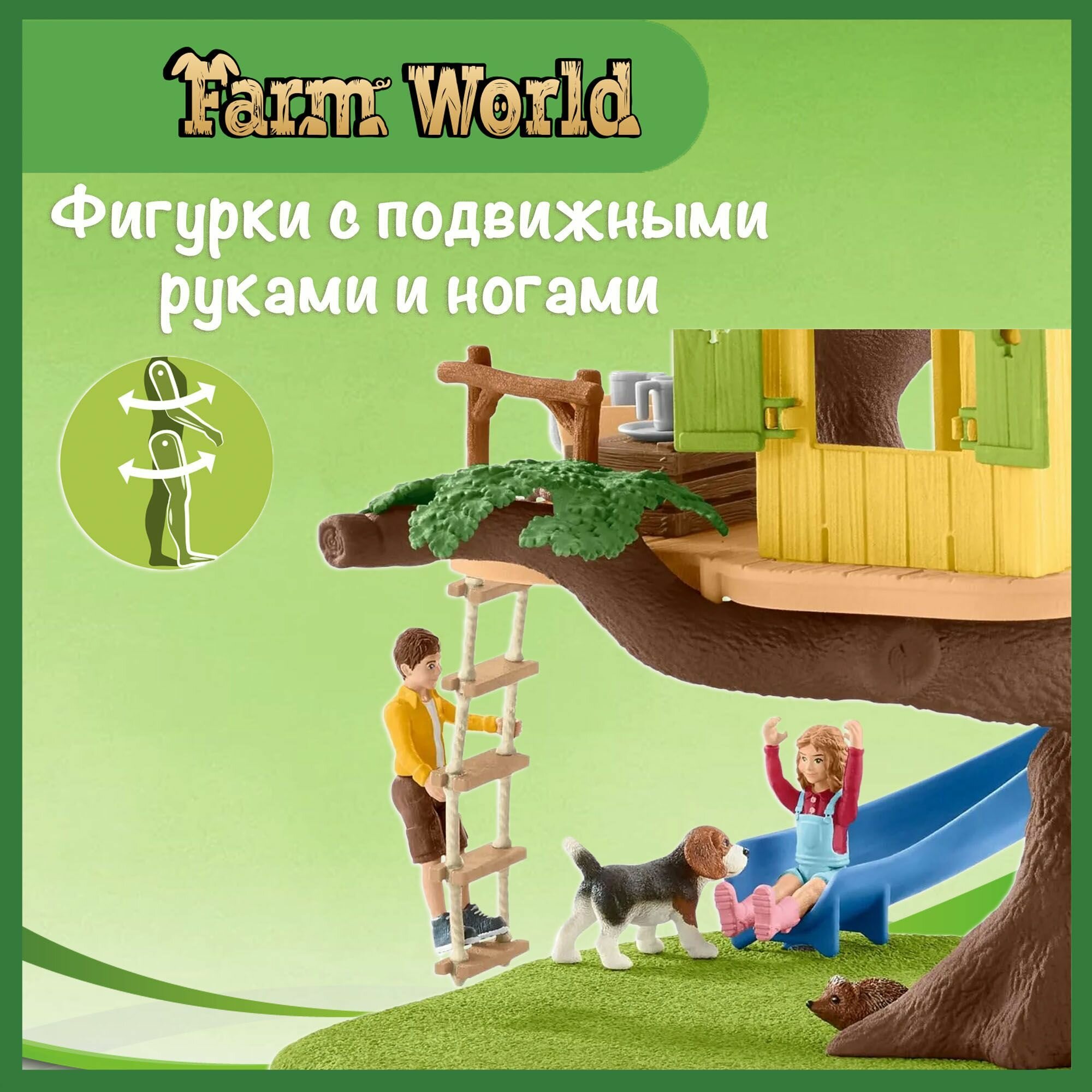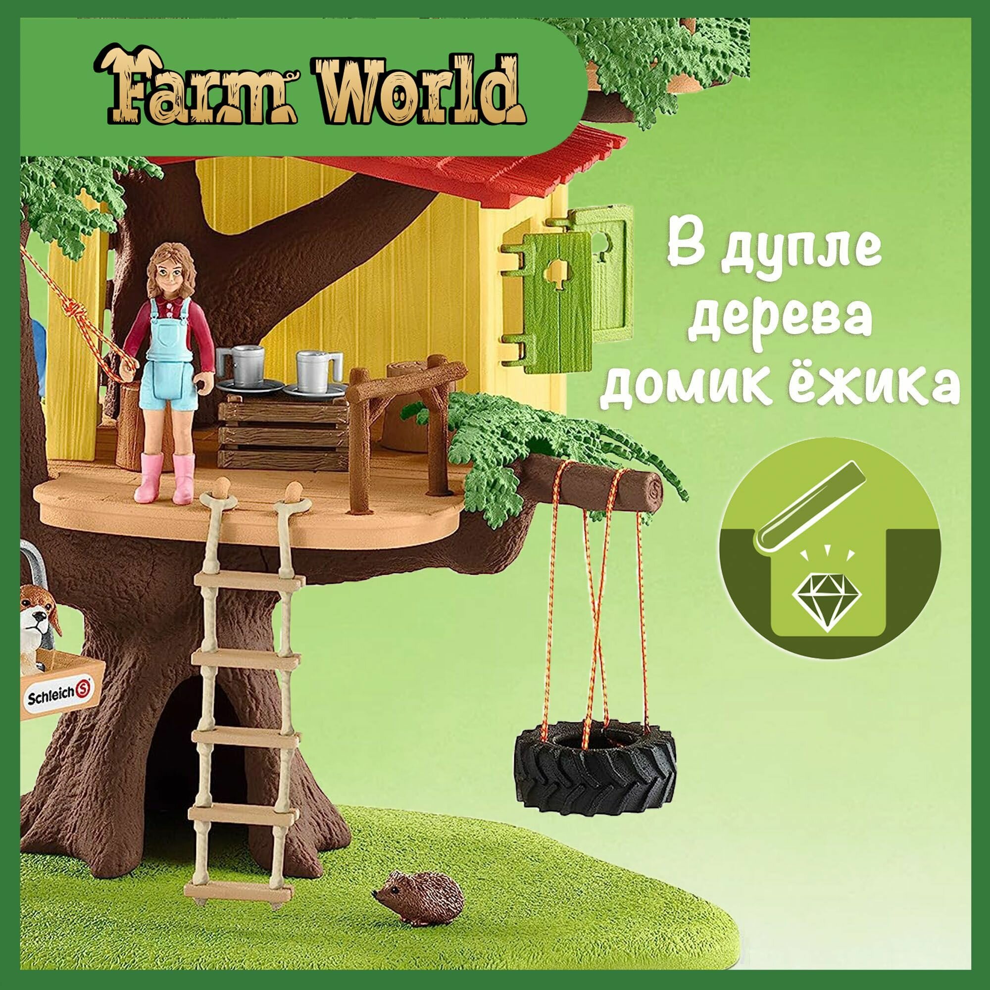 Фигурки Schleich моделируются до мельчайших деталей, любовно расписываются и служат для педагогически ценных игр. В доме на дереве Schleich дети фермеров Бен и Сара могут часами буйствовать, играть и устраивать пикники. Кто не мечтал о собственном доме на дереве?