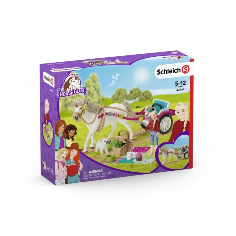 Малая карета Schleich для набора «Большое конное шоу» красиво украшен трилистником, подковами и бабочками. Также Клара добавила великолепные украшения и на своего пони Коннемара. Позади повозки лежат мягкое одеяло и набитая до отказа корзина для пикника. Клара может удобно устроиться на одеяле во время конного шоу вместе со своим щенком чихуахуа и насладиться закусками из корзины для пикника.