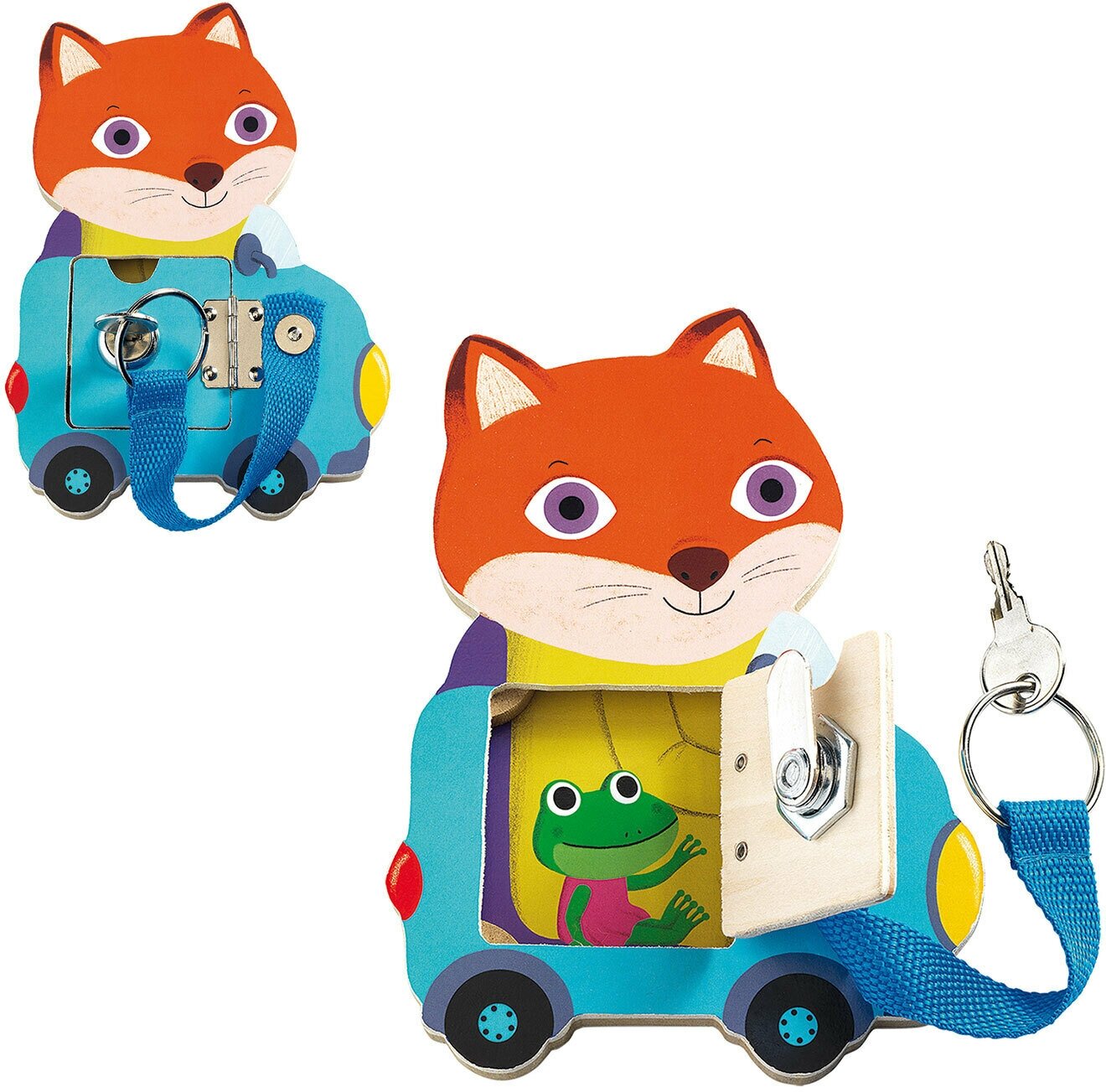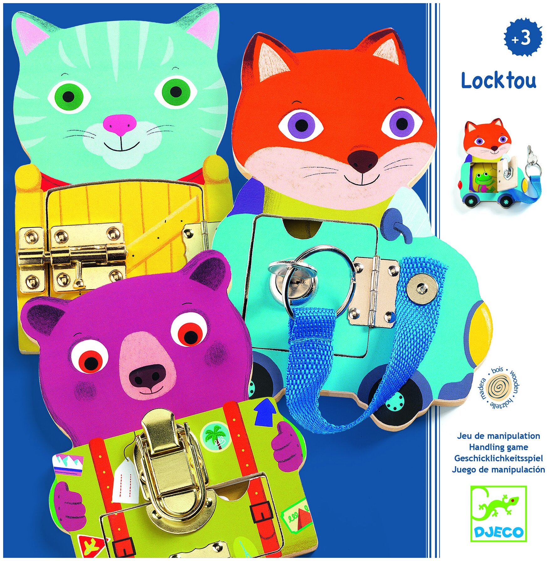 от французской компании Djeco предлагает малышу освоить три вида замочков.