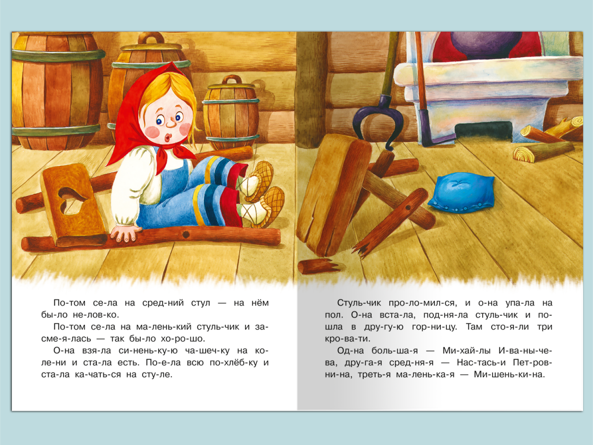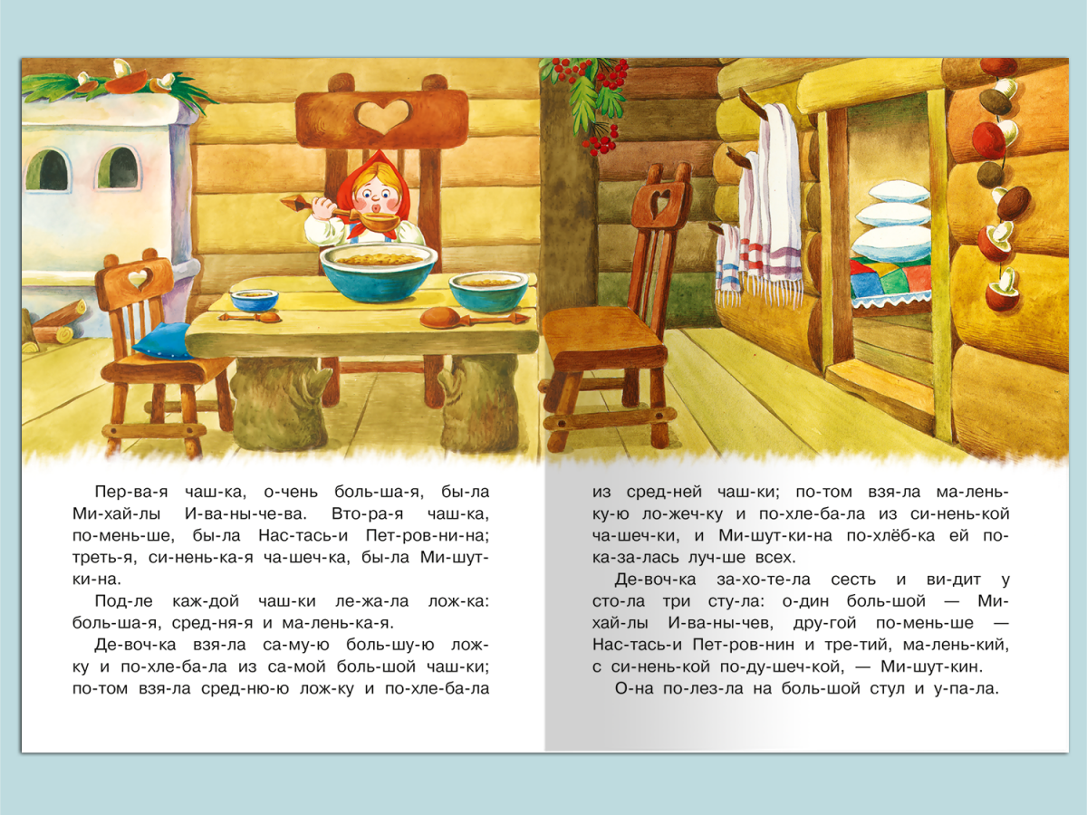 Любимая русская сказка «Три медведя» в классическом пересказе Л. Н. Толстого, выпущенная в серии «Читаем по слогам», адресована детям дошкольного возраста и предназначена для развития у них навыков самостоятельного чтения.