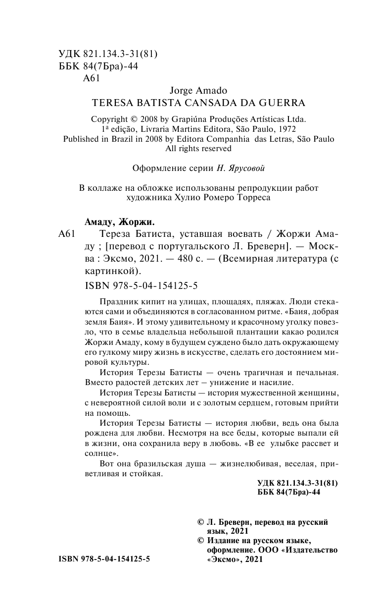 Тереза Батиста уставшая воевать (Жоржи Амаду); Эксмо, Редакция 1, 2021