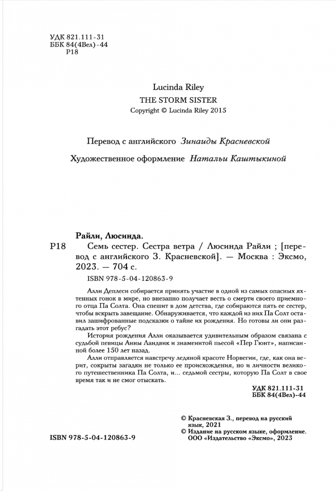 | Серия | Novel. Семь сестер. Мировые хиты Люсинды Райли |
