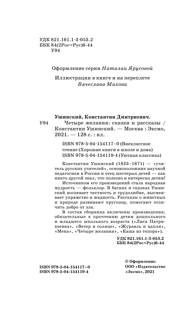 Четыре желания. Сказки и рассказы (Ушинский Константин Дмитриевич); ООО "Издательство "Эксмо", 2021