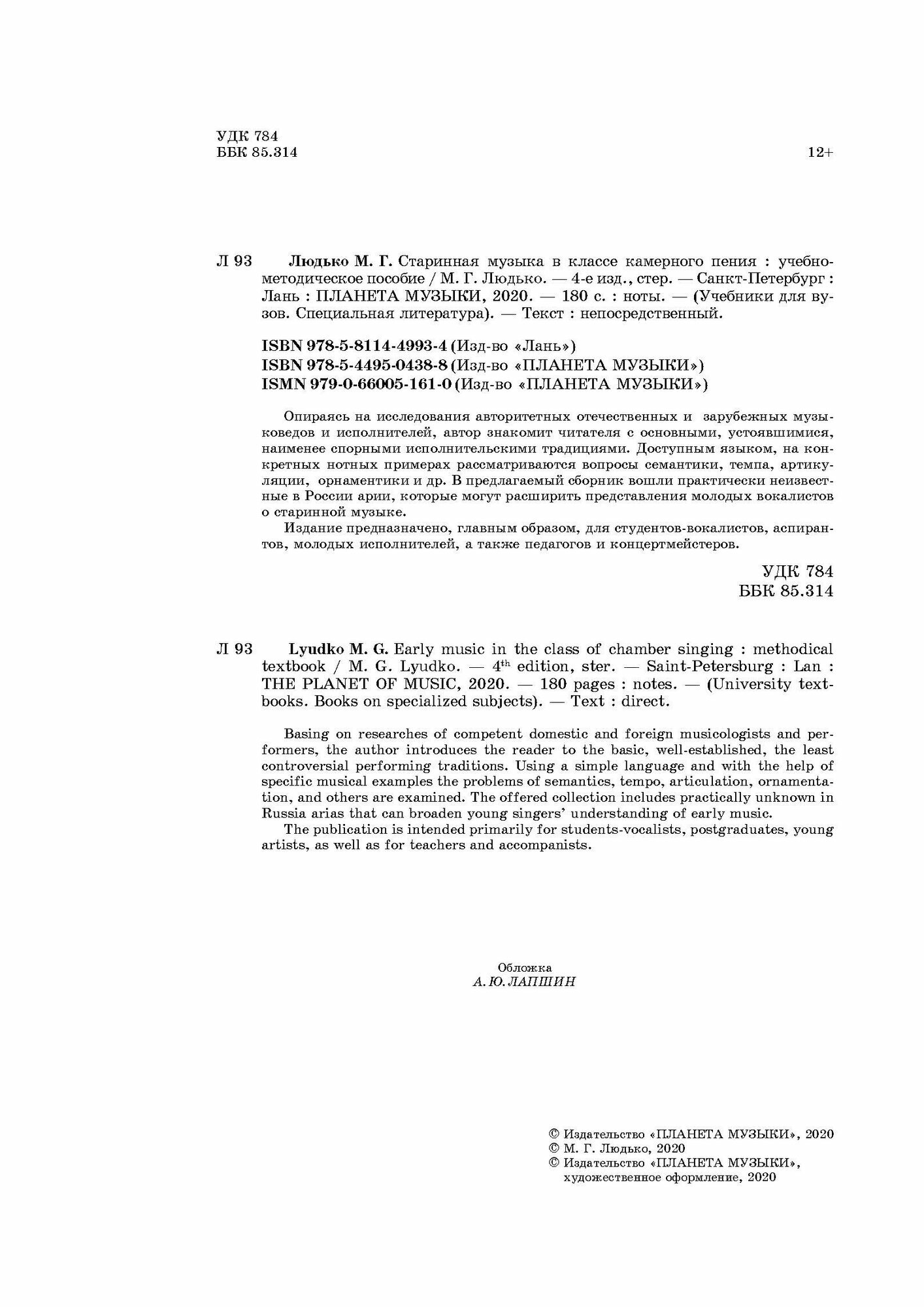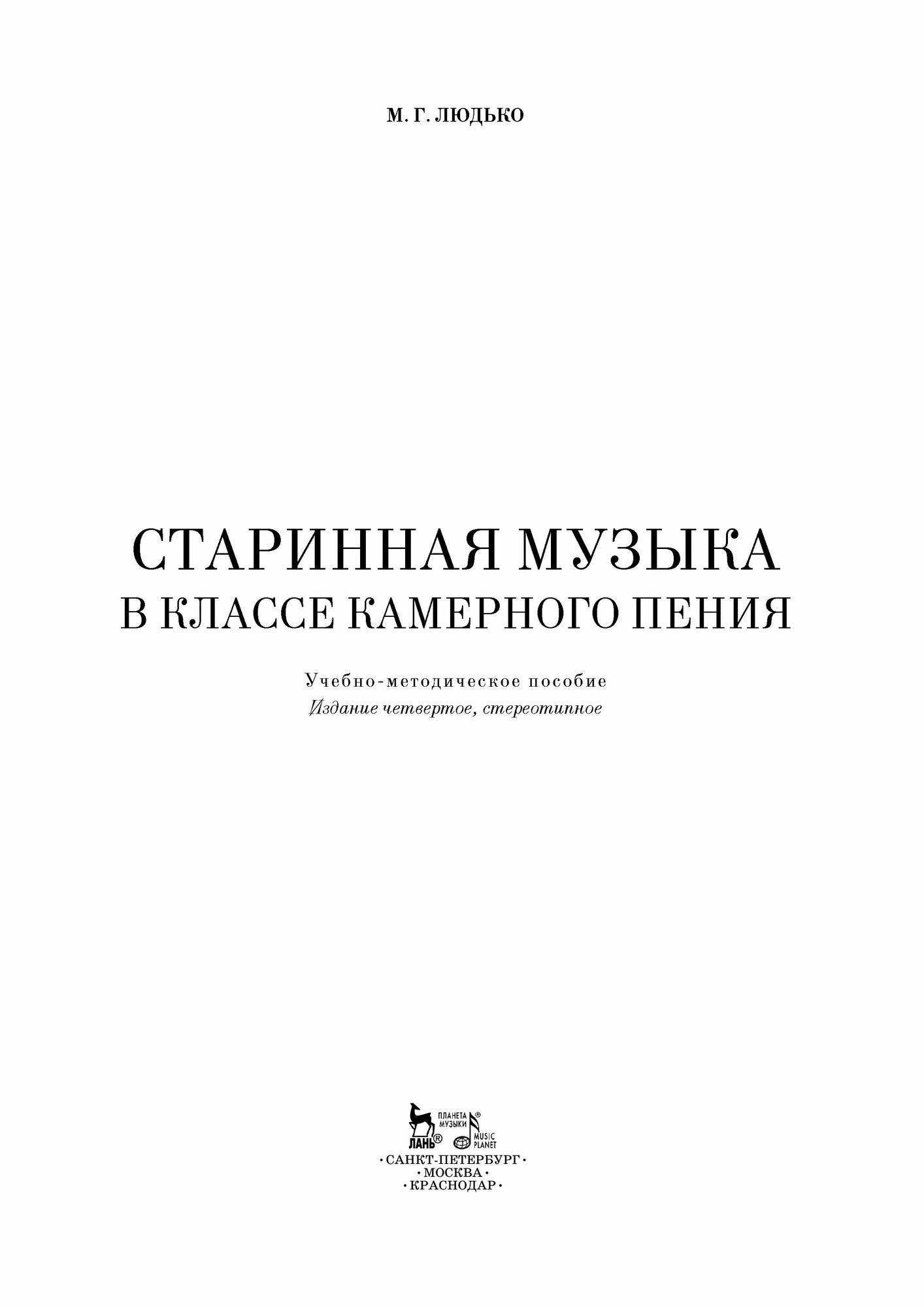 Старинная музыка в классе камерного пения (Мария Людько); Издательство «Планета музыки», 2024