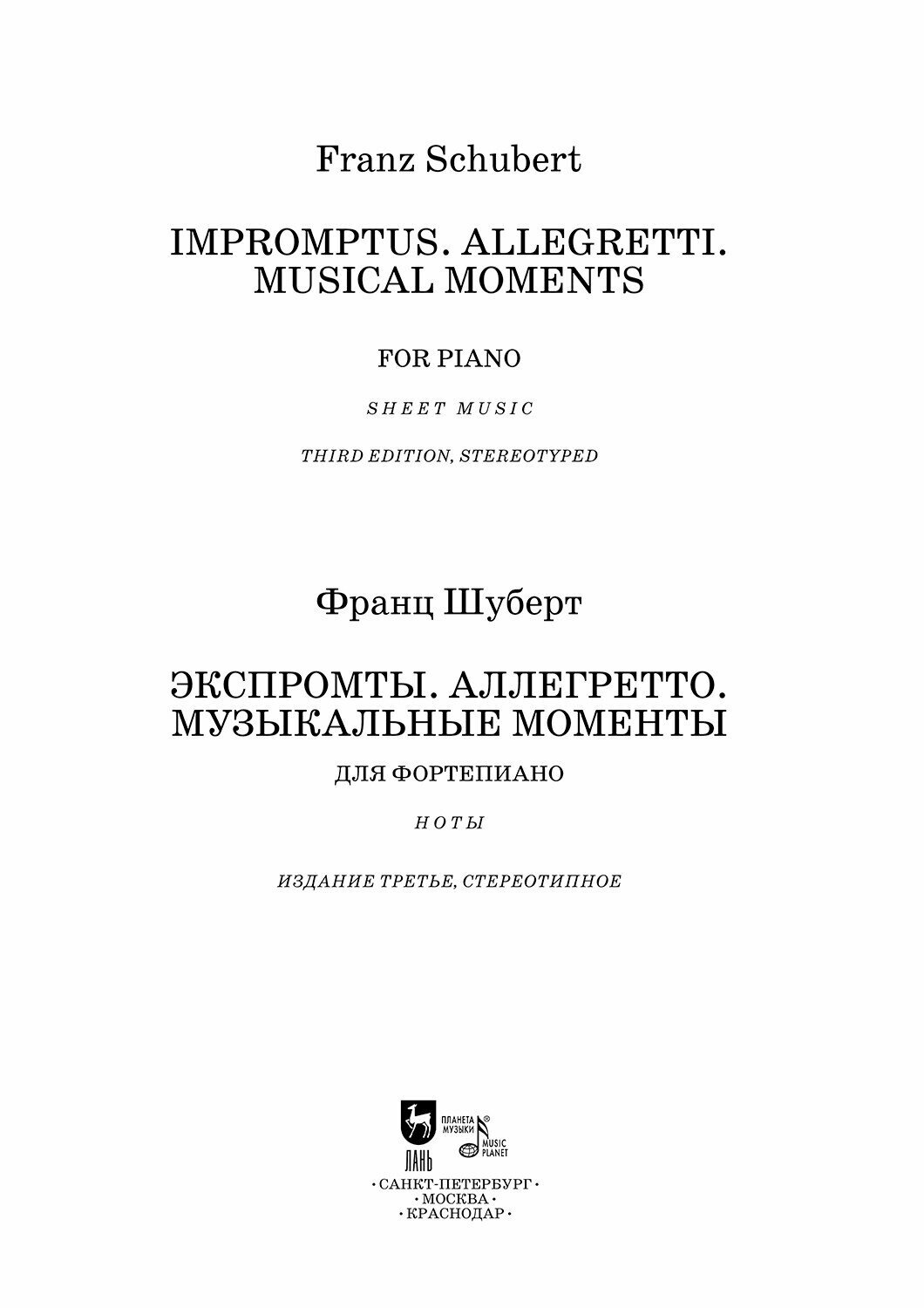Экспромты. Аллегретто. Музыкальные моменты. Для фортепиано (Франц Петер Шуберт); Издательство «Планета музыки», 2022