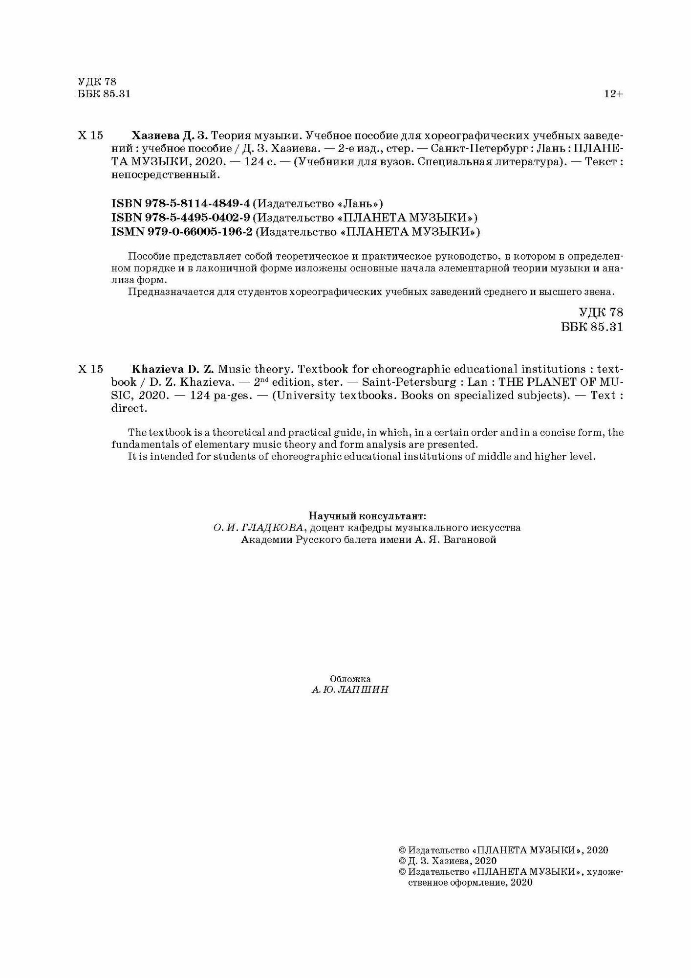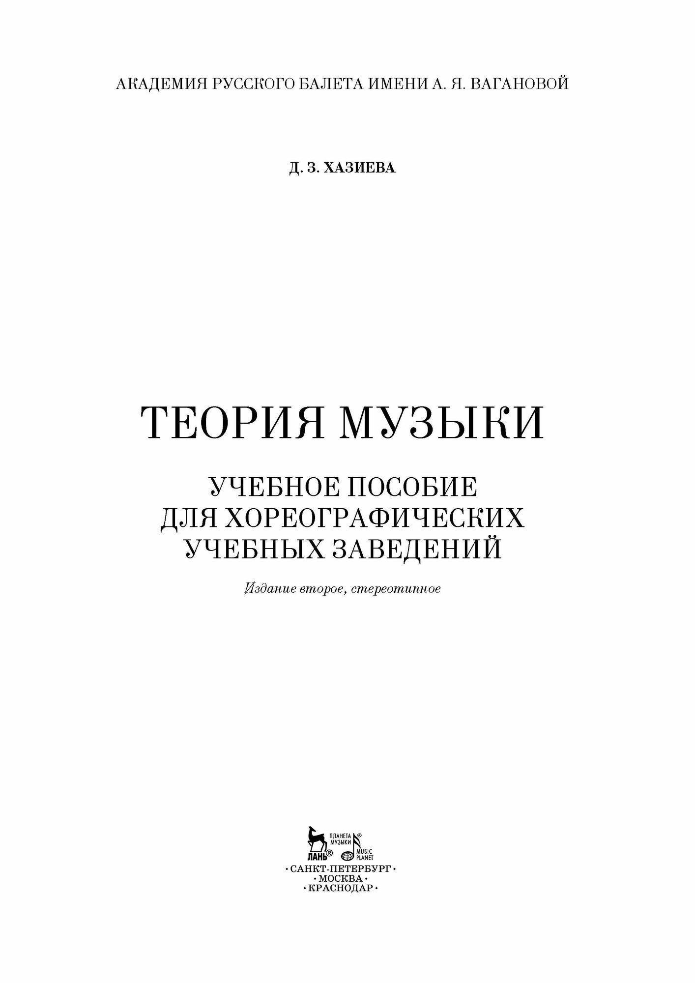 Теория музыки. Учебное пособие для хореографических учебных заведений (Д. З. Хазиева); Издательство «Планета музыки», 2020