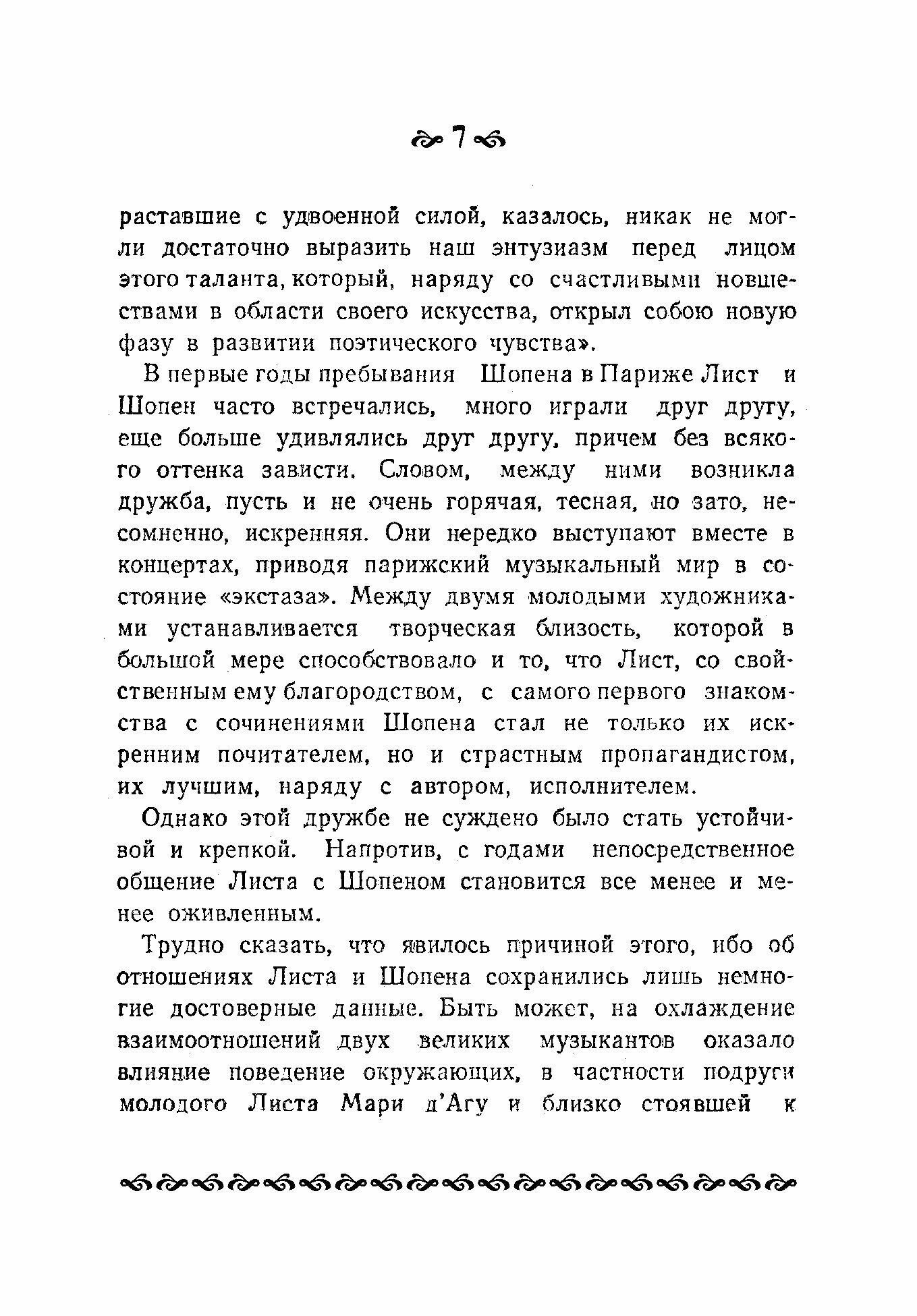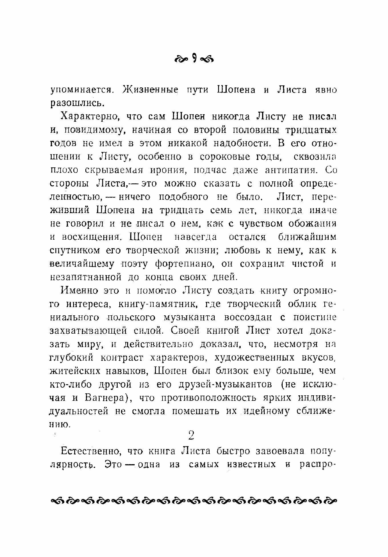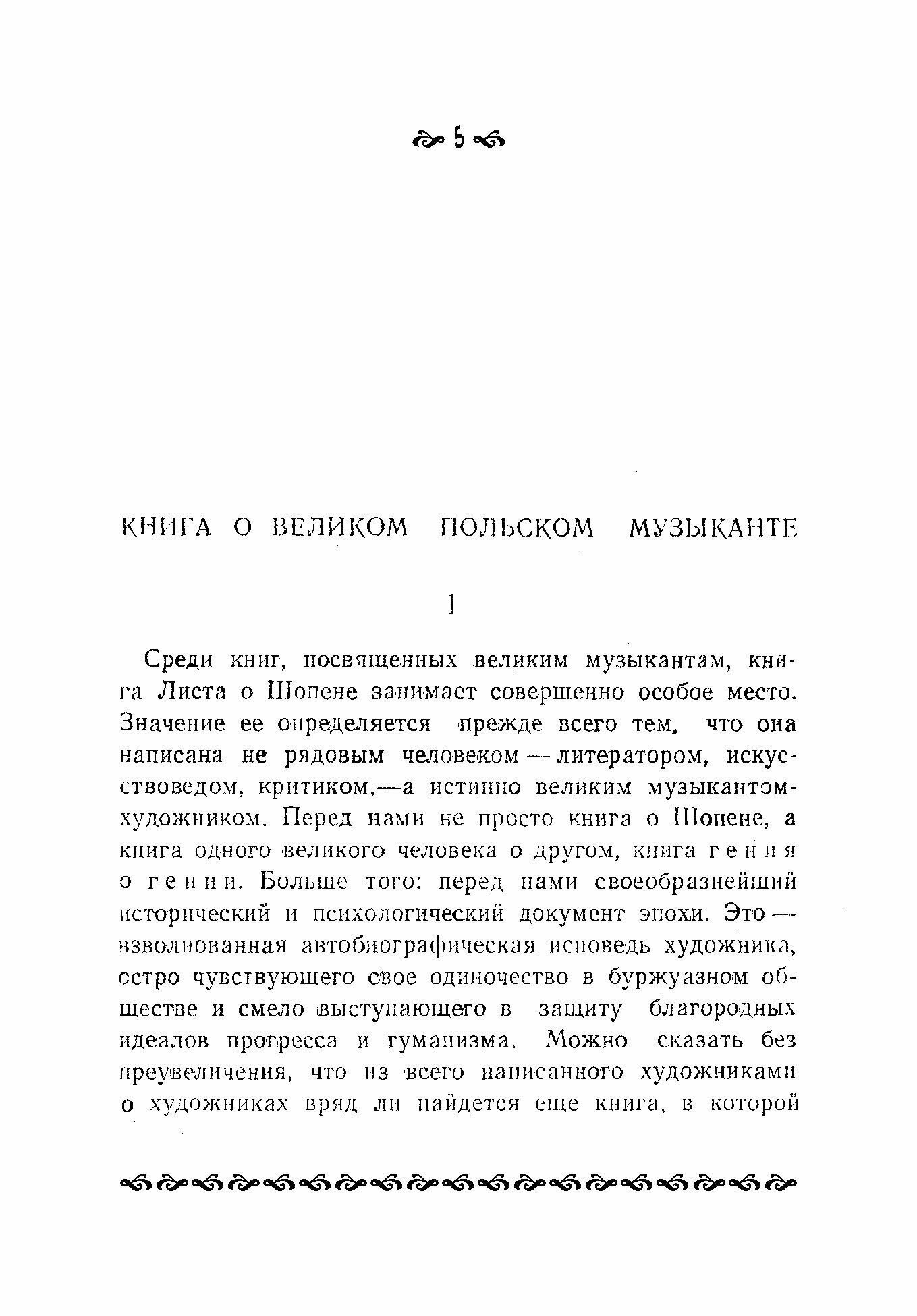 Среди книг, посвященных великим музыкантам, книга Листа о Шопене занимает совершенно особое место. Значение ее определяется прежде всего тем, что она написана не рядовым человеком – литератором, искусствоведом, критиком, – а истинно великим музыкантом-художником. Перед нами не просто книга о Шопене, а книга одного великого человека о другом, книга гения о гении. Более того, перед нами своеобраз-нейший исторический и психологический документ эпохи. Это – взволнованная автобиографическая исповедь художника, остро чувствующего свое одиночество в буржуазном обществе и смело выступающего в защиту благородных идеалов прогресса и гуманизма. Книга предназначена для студентов и преподавателей средних специальных учебных заведений, а также для широкого круга читателей.