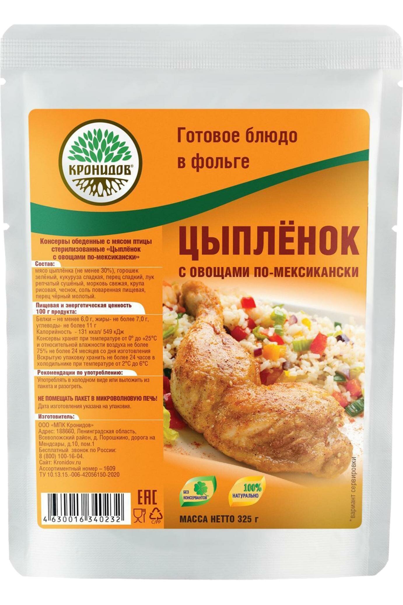 Цыпленок Кронидов с овощами по-мексикански 325г