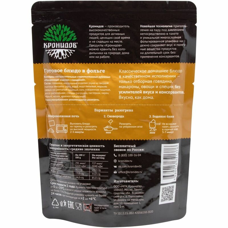 Говядина Кронидов с макаронами 250г