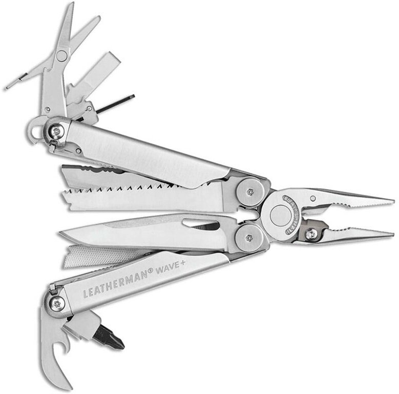| Инструменты (функции) | острогубцы пассатижи сменные кусачки для твердой проволоки, сталь 154CM сменные кусачки для проволоки, сталь 154CM инструмент для зачистки проводов нож, сталь 420HC серрейторный нож, сталь 420HC пила ножницы с пружинящим механизмом линейка (19 см) открывалка для консервов открывалка для бутылок напильник по дереву / металлу напильник с алмазным напылением держатель для больших бит держатель для малых бит средняя отвертка |