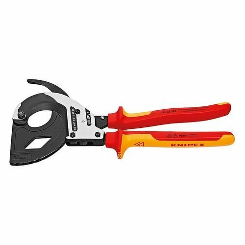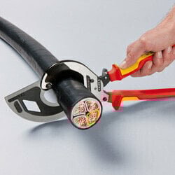 95 36 320 Кабелерез Прочные. Удобные. Стабильные.. Инновационный зубчатый привод.. Для кабеля диаметром до Ø 60 мм.. ручка с прочной опорой для захвата и нажима рукой при резании. Прост в использовании благодаря небольшому весу (825 г)и компактной конструкции (длина 320 мм) – удобно работатьв труднодоступных местах. разрезает медные и алюминиевые кабели диаметром до 60 мм при работе одной и двумя руками. закаленные резцы с прецизионным шлифованием режут ровно и чисто, не раздавливая кромки среза. для реза медного и алюминиевого кабеля, одно- и многожильного. инновационный трехходовой зубчатый привод с высоким передаточным отношением для легкой резки одной или двумя руками. Не подходит для стальной проволоки, проволочных канатов и тонкожильных (очень гибких) проводников. - Параметры режима резки: медный кабель, многопроводный: 600mm² - Параметры режима резки: медный кабель, многопроводный: Ø 60mm - MCM: 1.200 - Испытано на соответствие нормам VDE: да