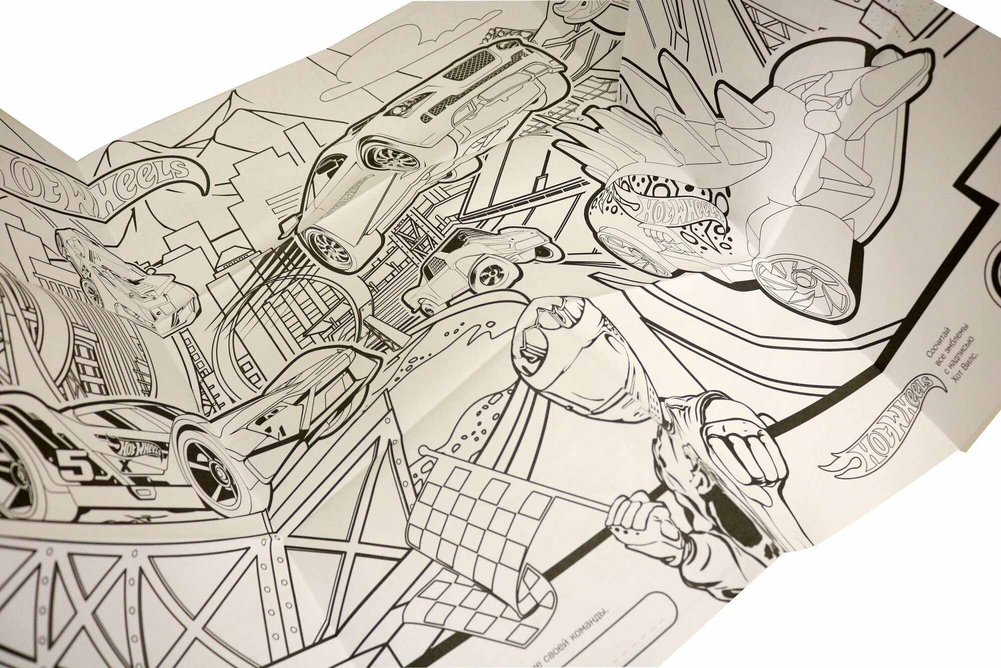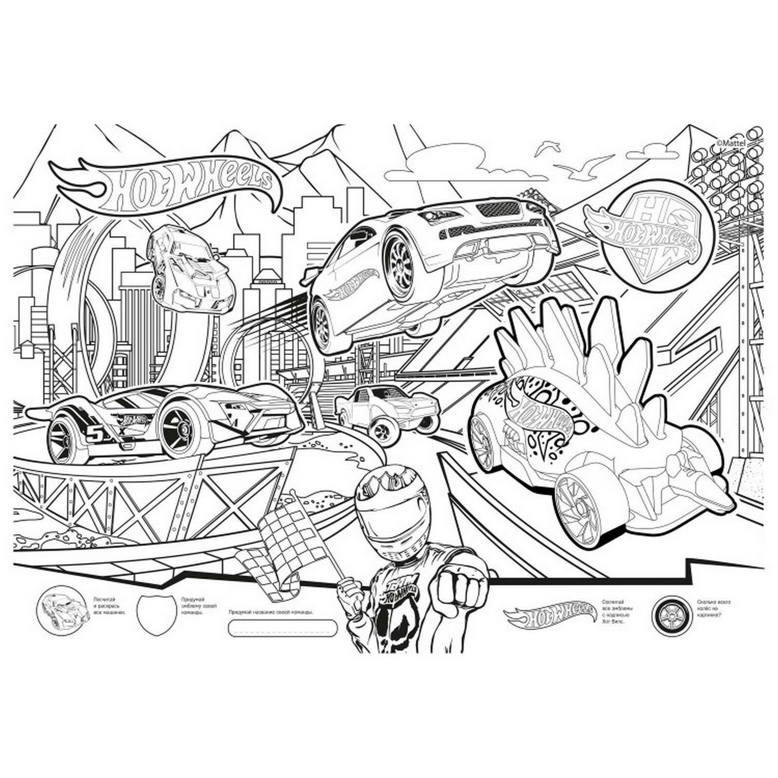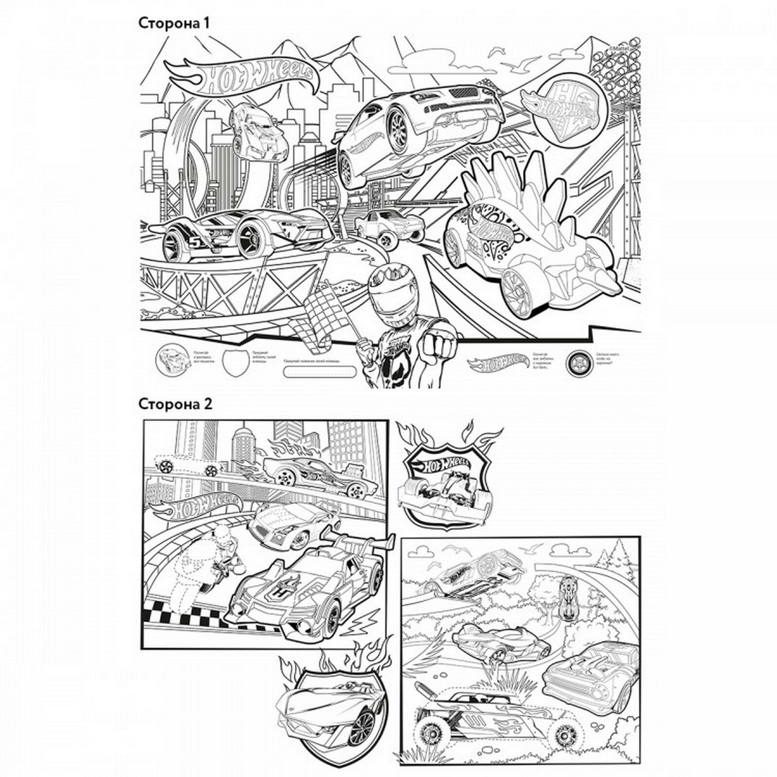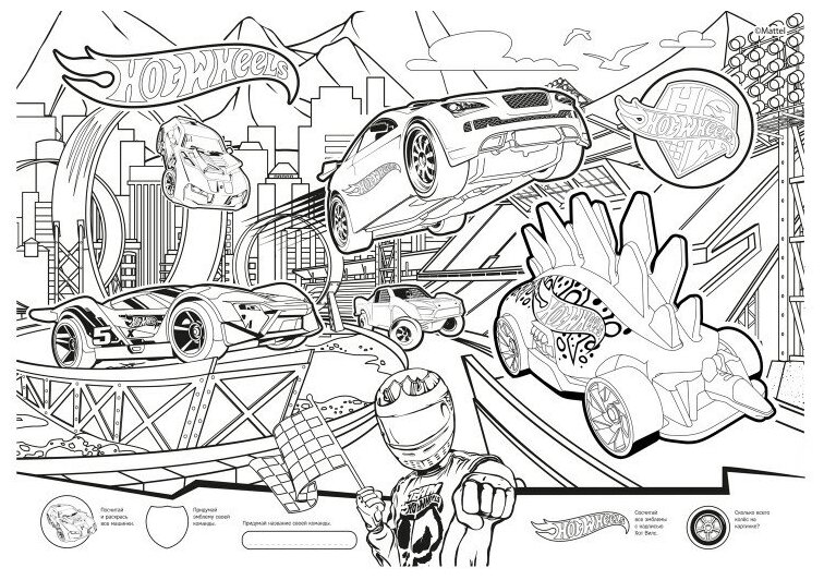 Очень большая раскраска "Хот Вилс. Жми на газ" - для всех, кто любит рисовать и раскрашивать! Двусторонняя раскраска-плакат размером 970 на 680 мм сложена в книгу с яркой обложкой. У книги картонная ручка - раскраску удобно носить. Очень большое поле для раскрашивания, увлекательные сюжеты, а ещё - развивающие упражнения на обороте. Любимые герои помогут развить творческие способности ребенка, фантазию и усидчивость. Такая раскраска - это идеальный вариант для досуга: можно раскрашивать одному, с друзьями или всей семьей. Раскраска отлично подойдет для подарка и как развлечение для детского праздника. Раскрашивайте на полу, на большом столе или повесьте плакат на стену. Будет весело!