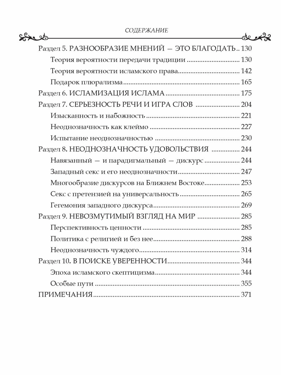 Автор рассматривает историю ислама и эти изменения как реакцию исламских обществ на идеологическое и экономическое доминирование Запада. Он обнаруживает в исламе богатейшие внутренние источники многоголосия, способные обеспечить существование различных норм, без борьбы за исключительность действия собственных ценностей.