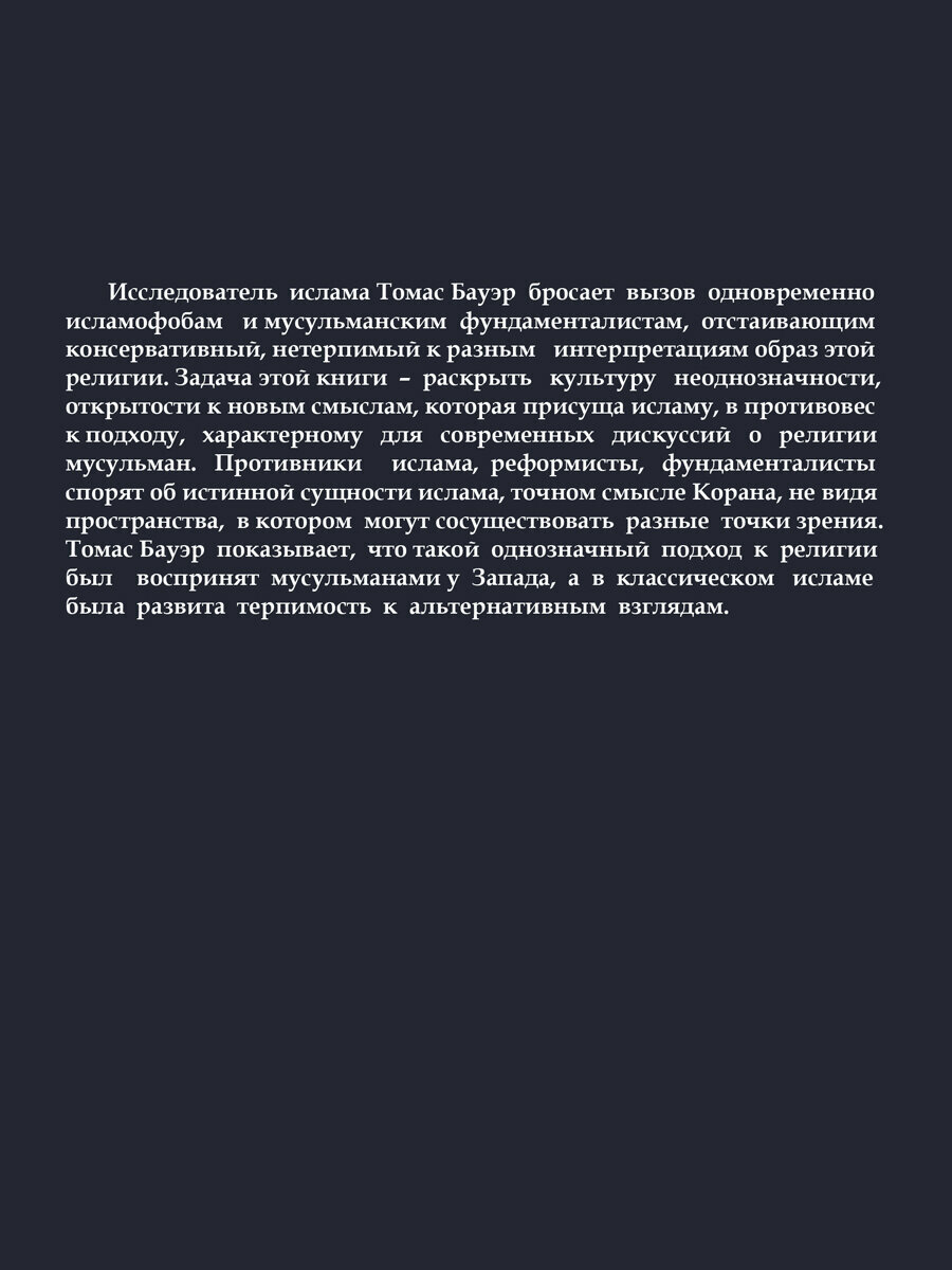 Культура неоднозначности и плюрализма К другому образу ислама (Томас Бауэр); Директ-Медиа, 2020