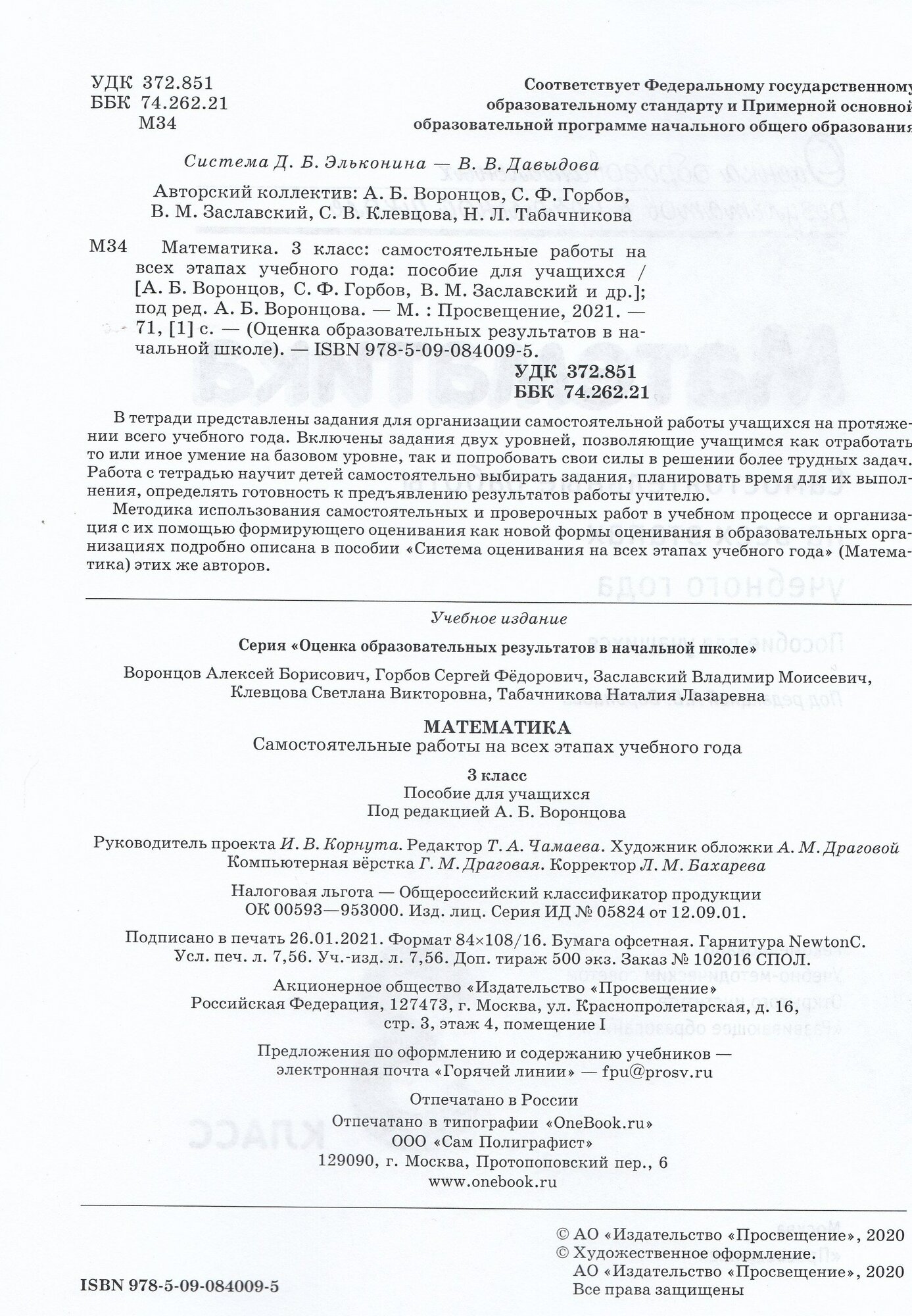 Математика Самостоятельные работы на всех этапах учебного года 3 класс Пособие для учащихся (Воронцов Алексей Борисович; Клевцова Светлана Викторовна; Заславский Владимир Моисеевич; Горбов Сергей Федорович); БИНОМ. Лаборатория знаний, 2021
