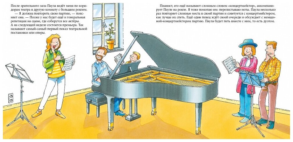 Я очень люблю музыку и часто захожу в гости к Пауле, нашей соседке сверху. Паула тоже любит музыку, ведь она оперная певица. Сегодня я заглянул к ней в театр, чтобы посмотреть, как там всё устроено.