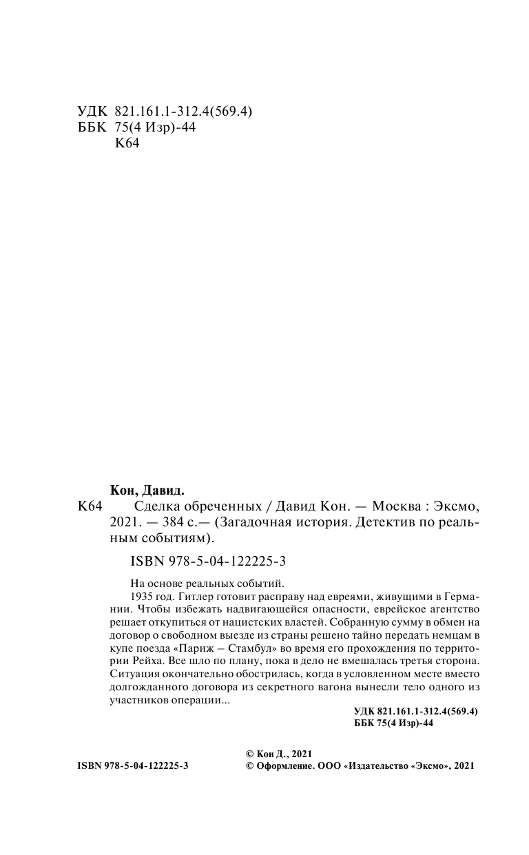 Книга: Сделка обреченных (Давид Кон); Эксмо, Редакция 1, 2021
