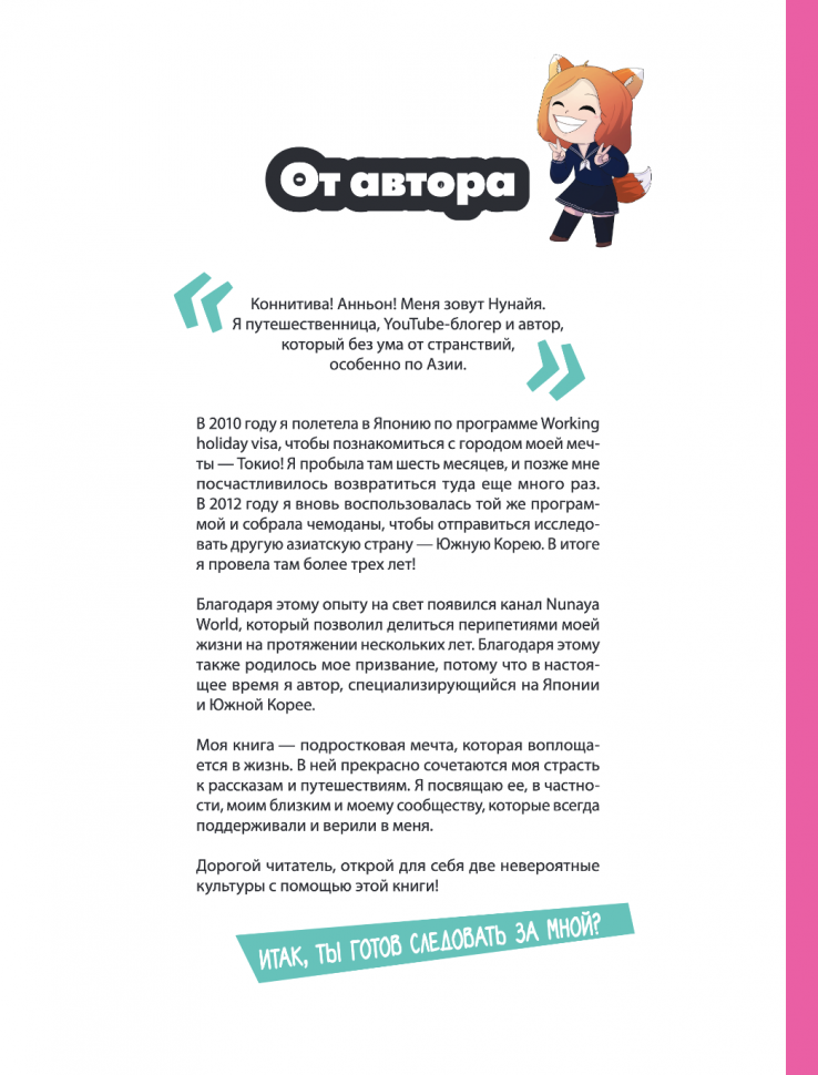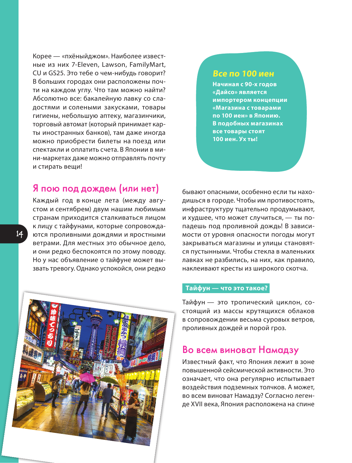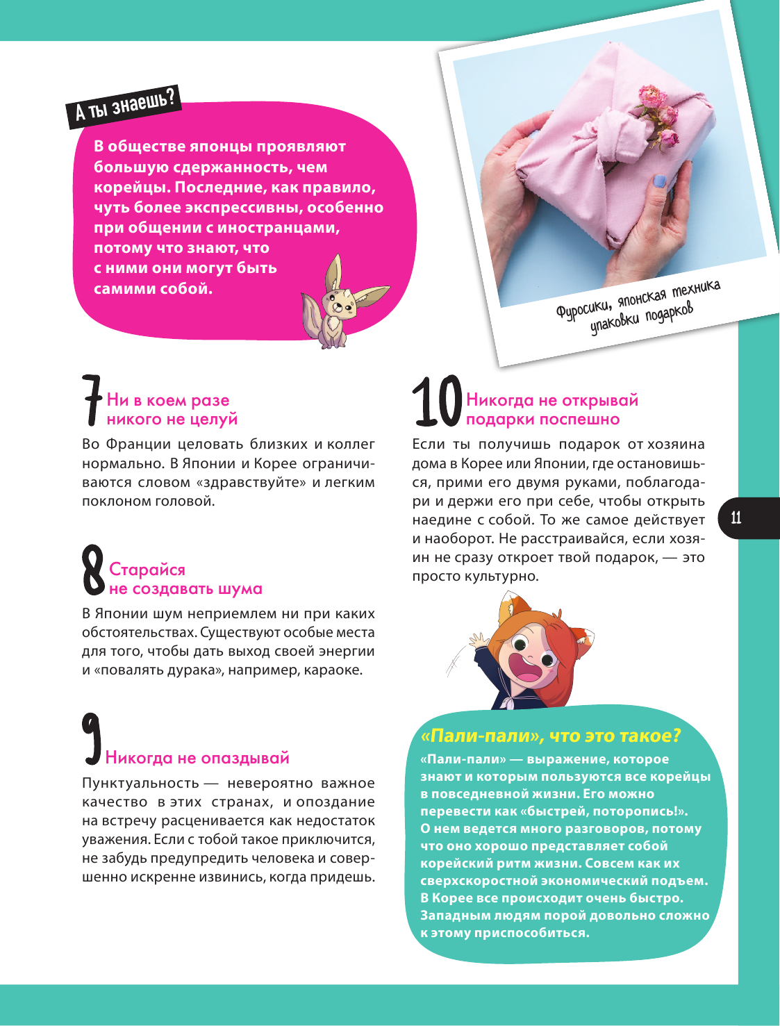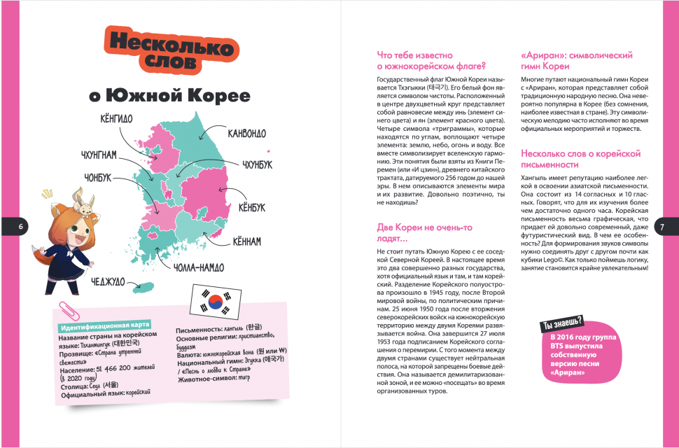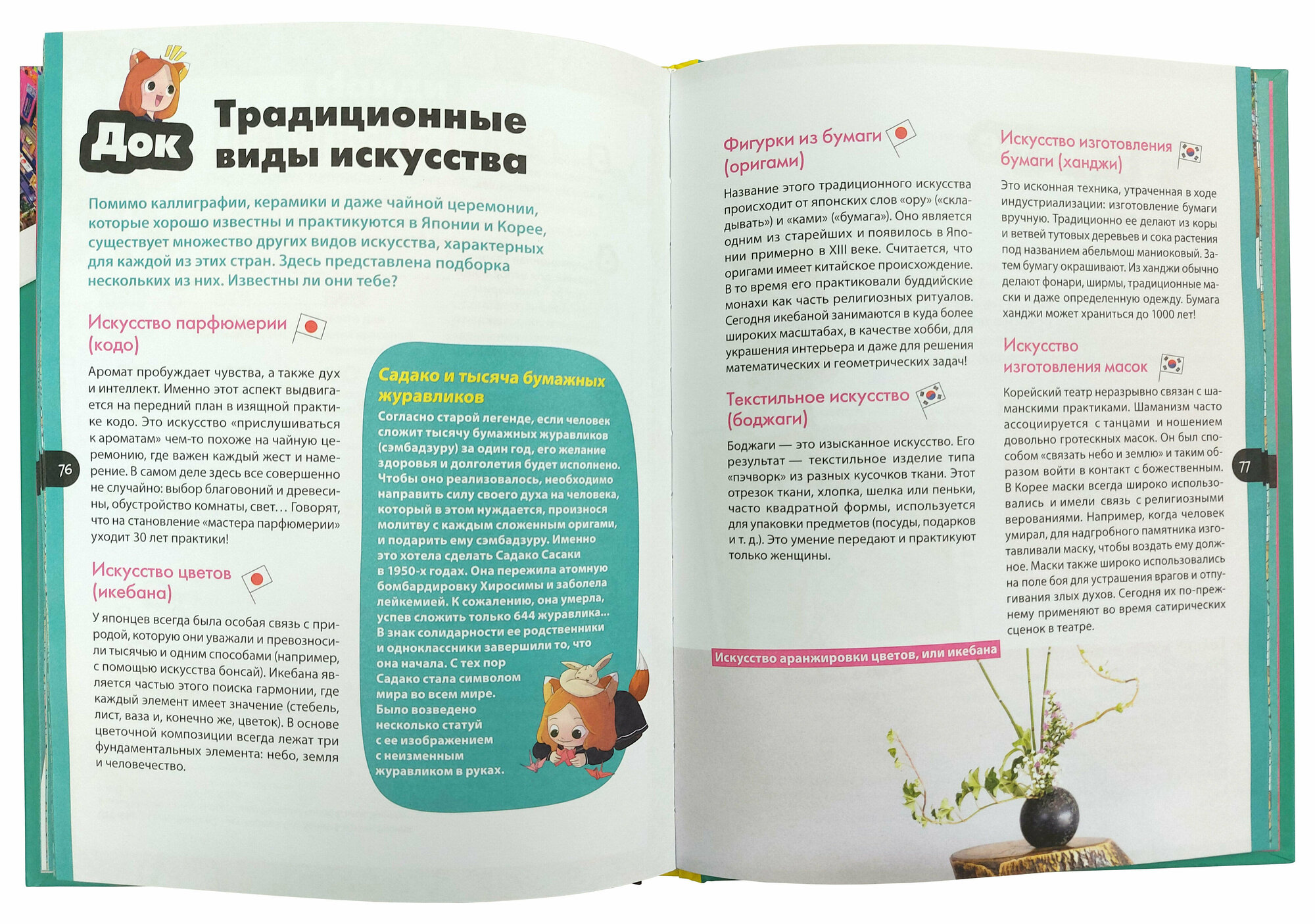 Я даже удивилась, сколько в этой книге интересной и разнообразной информации для любителей культуры Японии и Южной Кореи) Повседневная жизнь, еда, интересные места, мода и красота, новые технологии… Плюс тесты, списки, факты. И оформление, конечно, кавайное – милое)
