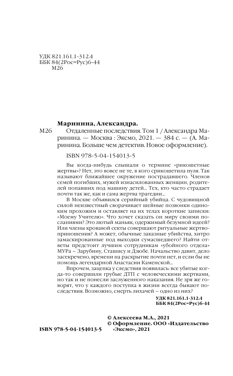 Отдаленные последствия. Том 1 (Маринина Александра Борисовна); ООО "Издательство "Эксмо", 2021