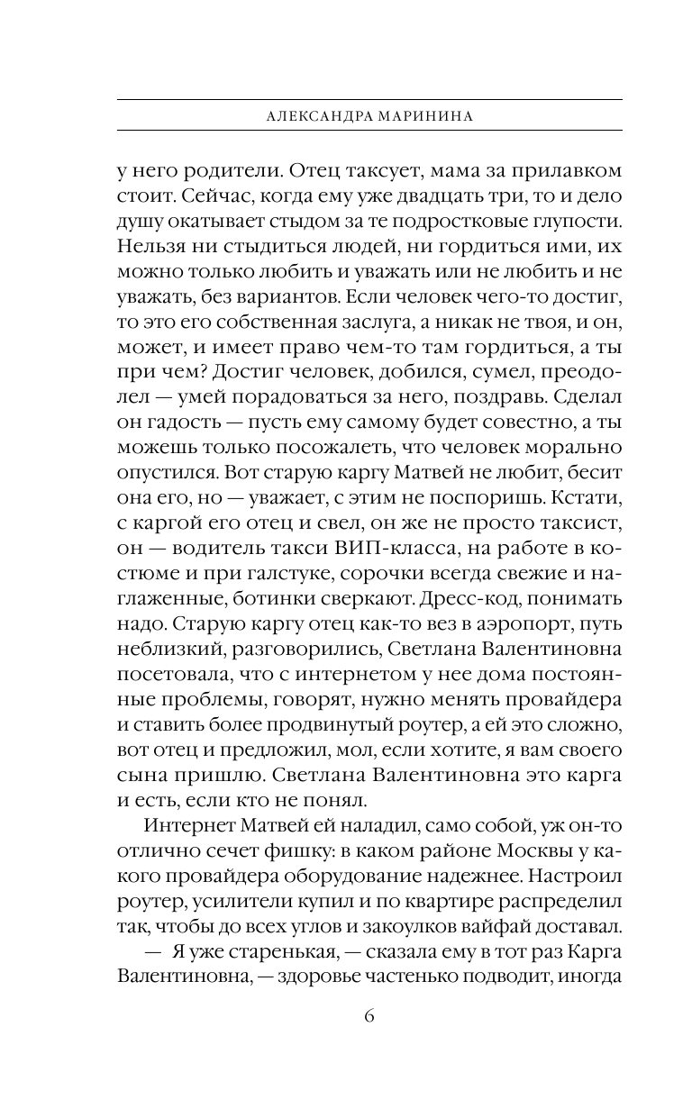 Новое расследование всенародно любимой Настасьи Палны в очередной раз, еще до начала чтения, восхитит рачительностью Эксмо, издающего половину цельного произведения топового автора отдельной книгой. На сей раз даже не озаботившись формальной разбивкой с отдельным заглавием для каждой из частей. Но это я так, ворчу, кто любит Маринину, тому и дважды за одну книгу заплатить будет в радость, а кто не читает, тот и одним томом не купил бы.