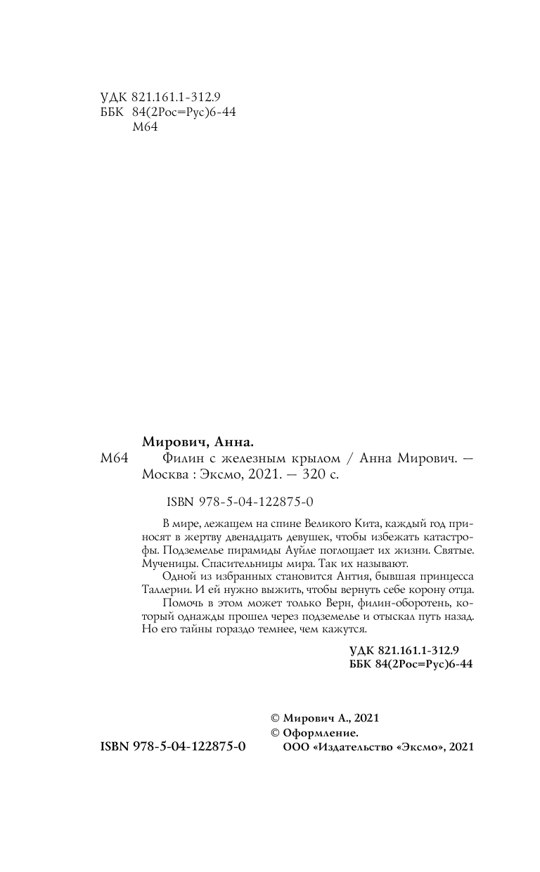 Книга: Филин с железным крылом (Анна Мирович); Эксмо, Редакция 1, 2021