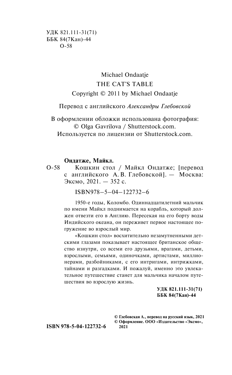 Книга: Кошкин стол (Ондатже Майкл); ООО "Издательство "Эксмо", 2021