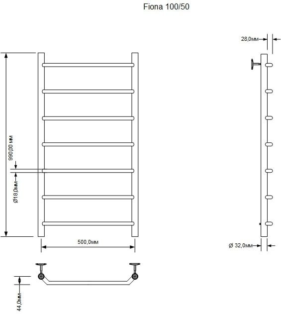 Водяной полотенцесушитель Aquanet Fiona 100x50 266738 Хром (размер: 50х100 см)