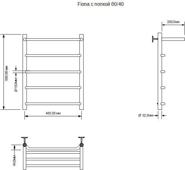 Водяной полотенцесушитель Aquanet Fiona 60x40 266739 с полкой Хром (размер: 40х60 см)