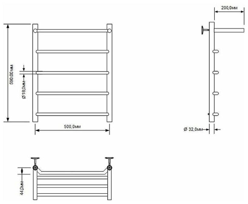 Водяной полотенцесушитель Aquanet Fiona 60x50 266740 с полкой Хром (размер: 50х60 см)