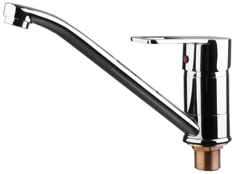 Смеситель однорычажный для кухни, поворотный излив, длина 24см, картридж керамический 40 мм, крепление на гайке, материал изготовления цинковый сплав. Качественное хромированное покрытие.