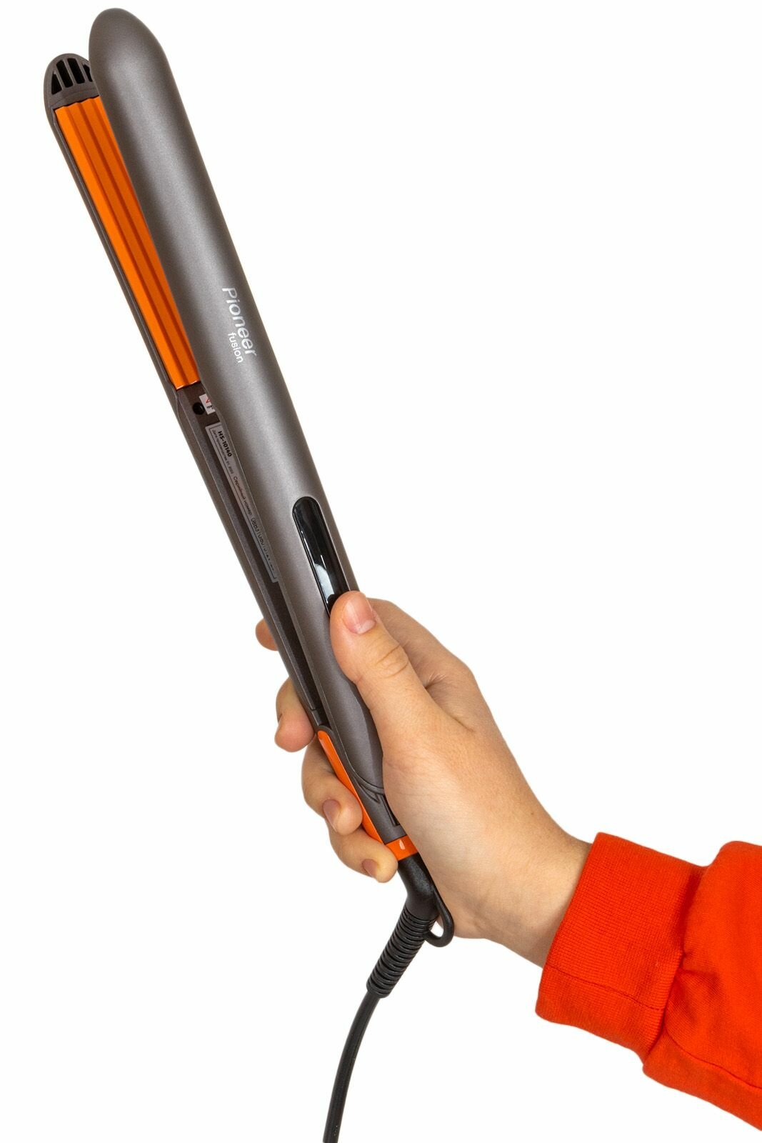 Стайлер гофре для волос бренда PIONEER HS-10140 мощностью 50 Вт с LED индикатором, керамическими пластинами и регулировкой температуры будет полезен женщинам, которые хотят создать объем у корней волос. За счет округлого, проводящего тепло корпуса стайлера можно не только создавать прикорневой объем, но и завивать крупные локоны. Эргономичная форма стайлера разработана специально с учетом анатомической формы ладони.Мы тщательно следим за производством каждой детали и за сборкой готового изделия, поэтому можем честно говорить, что наш прибор надежный и качественный.Стайлер гофре имеет керамические пластины, поэтому нагревает волосы быстро, но аккуратно и бережно. Размер нагревательных пластин 25x110 мм. В приборе предусмотрены несколько температурных режимов – от 140 до 200 градусов. Для того чтобы изменить температурный режим необходимо последовательно нажимать на кнопку, при этом на корпусе будет загораться соответствующий LED индикатор. Для ломких и поврежденных волос рекомендуется устанавливать температуру 140 градусов, для тонких и нормальных волос – 160 градусов, для нормальных волос – 180 градусов, для густых, жестких и непослушных волос – 200 градусов. Для максимального эффекта следует брать меньше волос и перемещать стайлер медленно. Обычно для обработки одной пряди достаточно 3-6 секунд.Прибор снабжен блокиратором, который обеспечивает компактное хранение стайлера. С помощью специальной петельки можно хранить стайлер в подвешенном состоянии.Для удобства использования шнур выполнен по технологии «защита от перекручивания», а значит не запутается во время использования. Шнур вращается на 360°, что также способствует комфортному использованию прибора.При применении стайлера PIONEER волосы не пересушиваются, быстро приобретают требуемую форму и сохраняют ее на протяжении длительного времени.